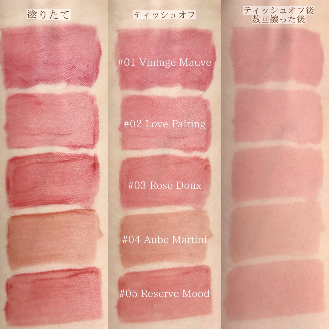 ⋱COSNORIウォーターブラーリーティント全色レビュー🌟⋰❥COSNORIウォーターブラーリーティント01ビンテージモーヴ02ラブペアリング03ローズデュー04オーブマティーニ05リザーブムード06フューシャタンニン07ジンジャーヌーヴォー...