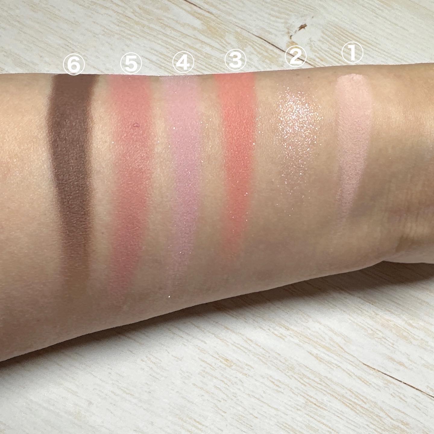 テクスチャーはサラサラだけど、飛び散るわけではなくて吸い付いてくる感じでした。 グリッターは、湿式のウェットさと押すとムニっとして、ちょっとゼリーテイストな気がします。ギラギラすぎなくて使いやすかったです。 ⑥はピンクも混ざっていてとても可愛い。アイスクリーム屋さんのストロベリーチーズケーキみたいな🍓これも、白すぎなくて肌馴染みの良い白系なので使いやすかったです。