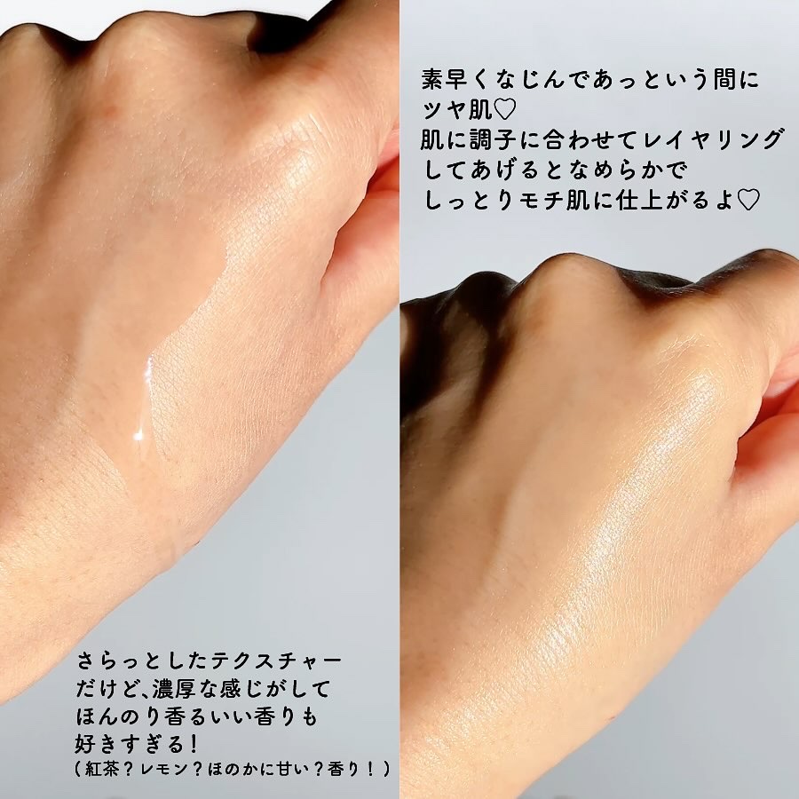 コンブチャとは ▶︎紅茶を淹れた水に砂糖とバクテリア善玉菌「スコビー」を添加し、長い時間をかけて発酵したお茶のことをいいます。 わずかにとろみがあって、肌ツヤを簡単に演出! 3回くらいに分けてレイヤード付けすると、しっとりなめらかな肌に仕上がって乾燥に負けない肌に❤️ 肌の抗酸化や弾力改善、新陳代謝促進など、魅力的な商品なので一本使い終わった後のお肌が楽しみです✨
