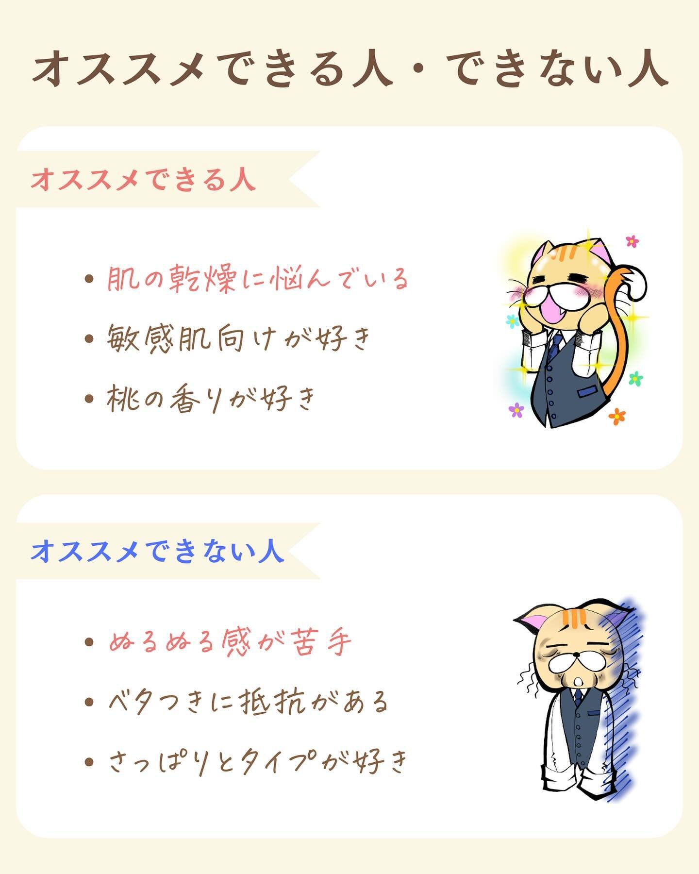 敏感肌テスト済み。3種類のセラミドと2種類のコラーゲンにより潤いある肌へ導く。ぬるぬる感はある。後から少しベタベタ感が出てくる。 30分後の肌水分量増加率は154%と高めだよ♪