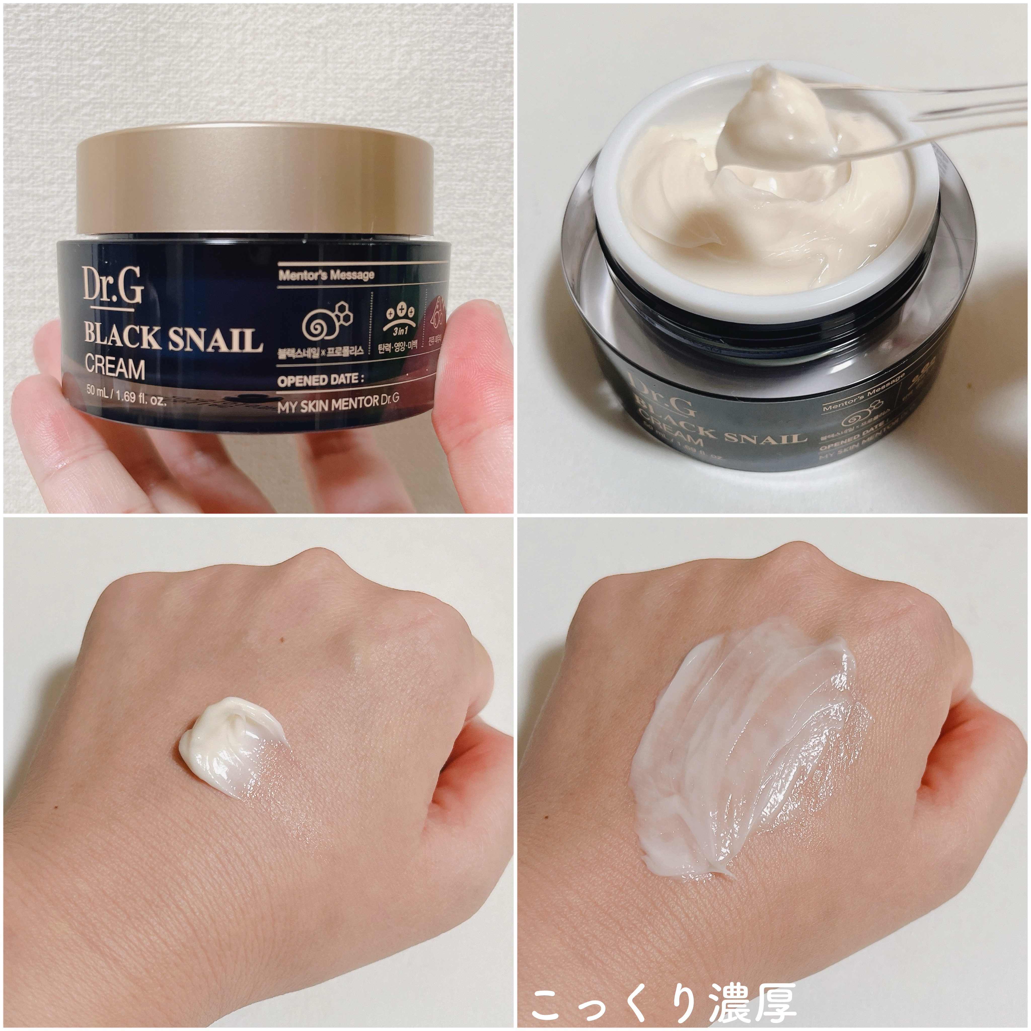 テクスチャー自体はかためなのにお肌への浸透はなめらか! ドクタージーがお肌のために考案した優れもの✨ 保湿だけでなく、美白、しわ、弾力対策にも✨ ブラックスネイルを20%&ブラックプロポリスが配合されていてアンチエイジングにぴったり🩷 ナイアシンアミドやツボクサエキスなども含まれています✨