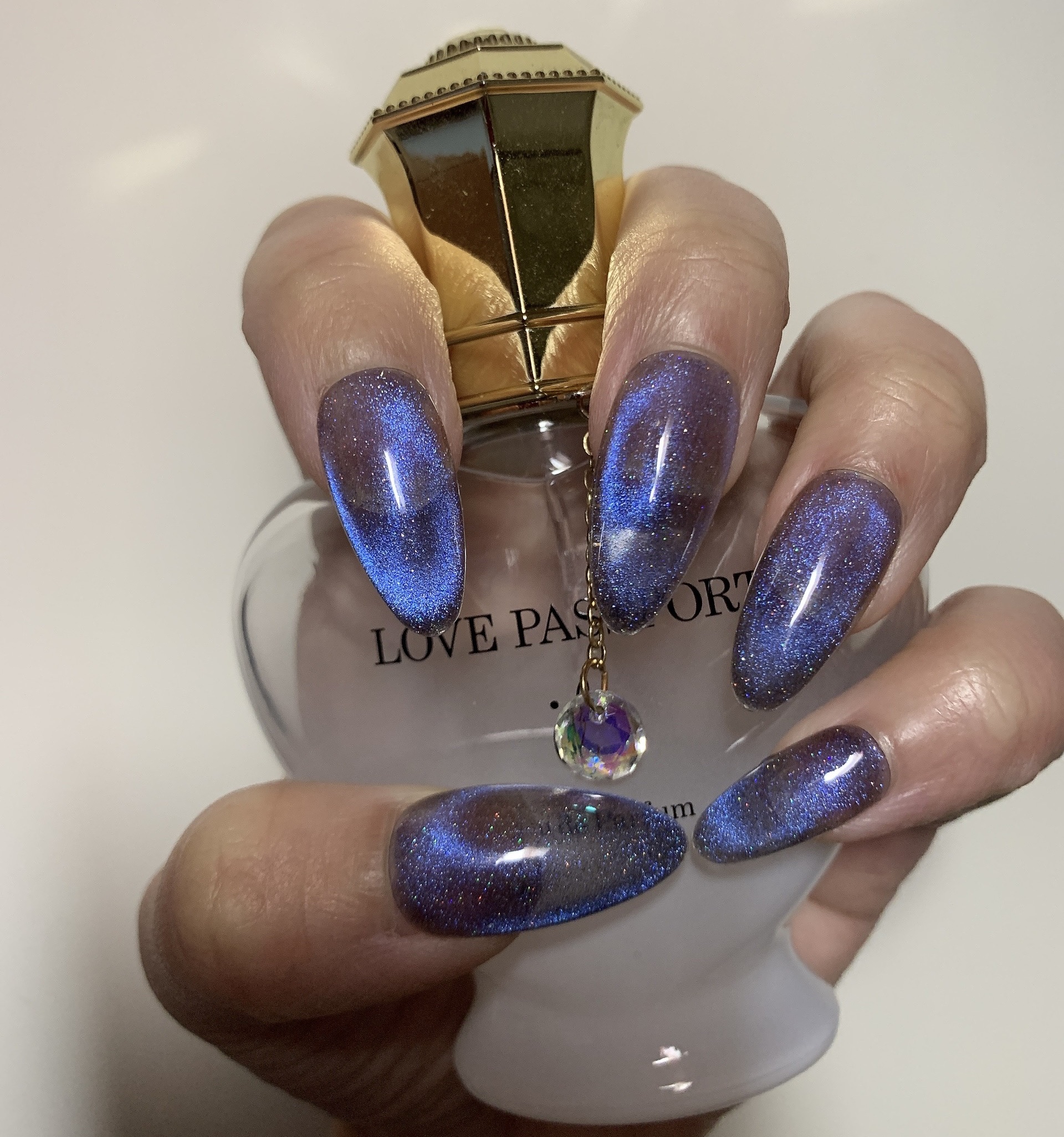 ブルーカラーの中に程よいラメがキラキラしていて、めちゃくちゃ可愛い😂♡ 一度塗りだと少し物足りなかったので、私は二度塗りしましたが、一度塗りでも発色が良くて可愛かったです🥰 ネイルシールを一緒に購入して付けてみました💁♀️ このネイルシールなんですがご使用方法の所にも書いてあるのですが、台紙からシールを剥がす際、私の場合一緒に購入したピンセットを使って、丁寧に剥がしたのですがパーツが少しズレたりしてしまったので、使用する際は気をつけた方がいいなと思いました(^_^;)💦 でもパーツが取れたりする事はなく、キレイに付ける事が出来ました( ¨̮ )💕 どの商品も購入して良かったと満足してます♥️