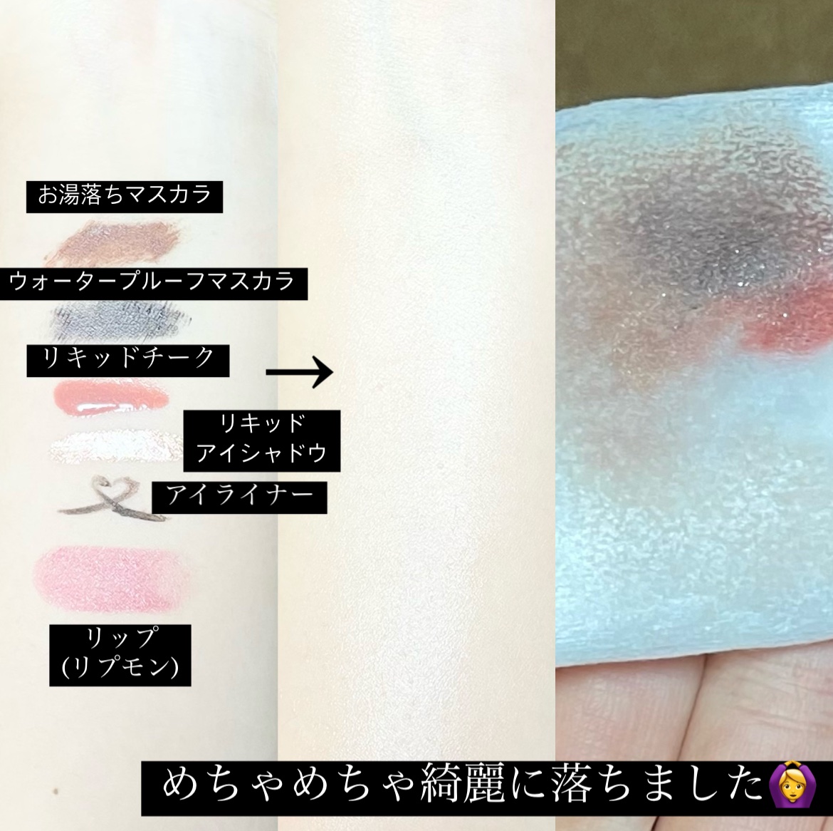 毛穴汚れもするん落ちに惹かれました 手が濡れていてもOKなのが嬉しかった しっかりガチガチにマスカラを塗ったまつ毛にも時間はかかりますがくるくるしていると少しづつ落ちていきました👏👏