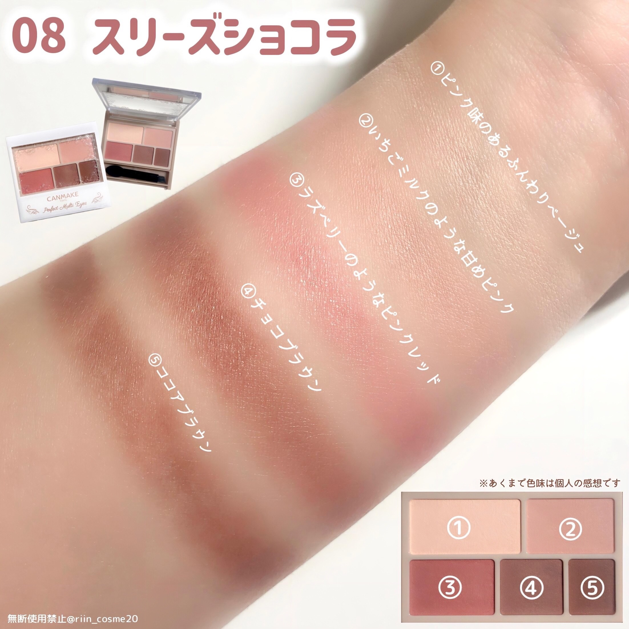 キャンメイクパーフェクトマルチアイズ08 スリーズショコラ〜商品説明〜アイメイクがこれ1つで完了アイシャドウ・アイブロウ・アイライナーとマルチに使えるラメなしマットな5色入りアイシャドウパレット肌にとけ込むようなやわらかな陰影で、愛らしいナチ...