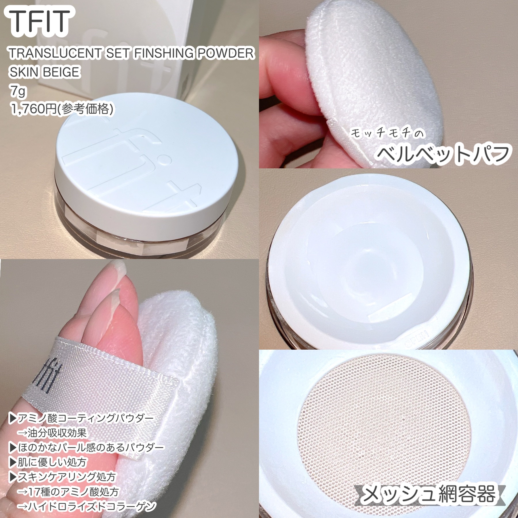 ㅤㅤㅤㅤㅤㅤㅤㅤㅤㅤㅤㅤㅤㅤㅤㅤㅤㅤtfit@tfit.japanトランスルーセントセットフィニッシングパウダー02スキンベージュテカリ・毛穴レス肌へ導く超微粒子パウダー。粒子が毛穴や凹凸にまんべんなく密着することで皮脂を吸着して油分を抑えメ...
