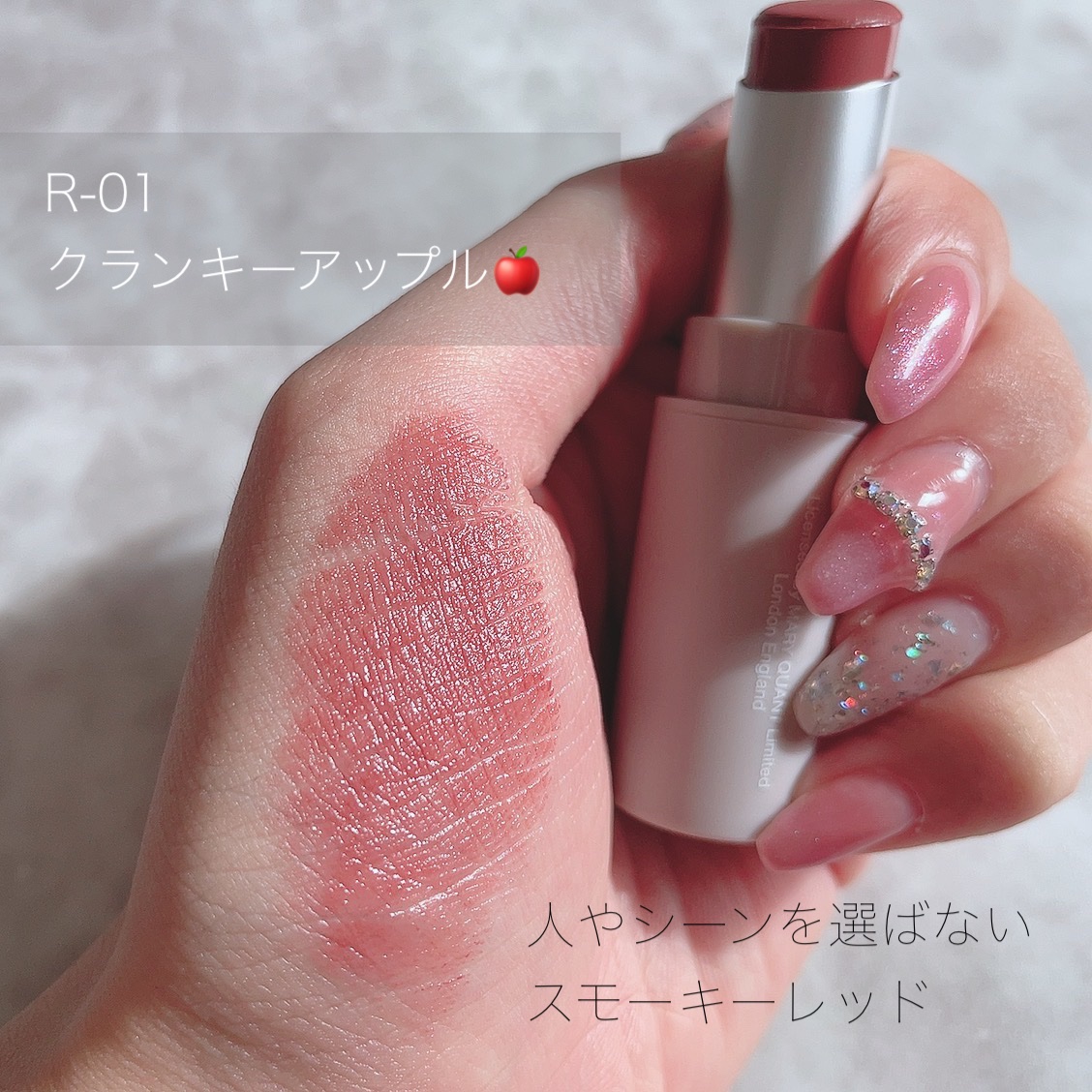 スルっと塗れる柔らかめな質感 乾燥しにくいですが、何度も塗り直す場合は保湿した方がいいと思います…! ソフトマットな仕上がりで、マットリップ苦手でも使いやすそうです◎ R-01は柔らかいレッドブラウン カラバリはくすんだ色が多く、おしゃれな色ばかりなのでおすすめです☻