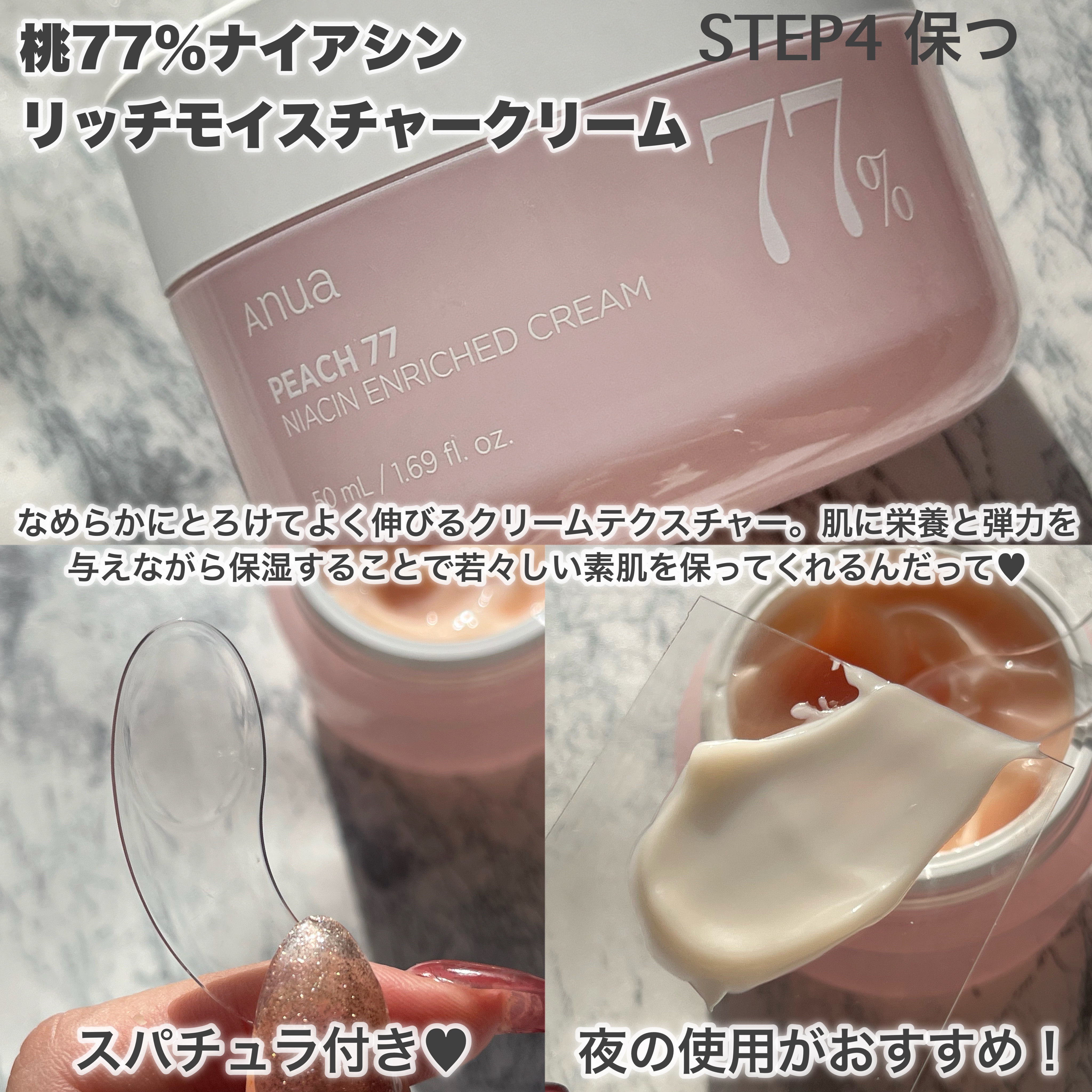 みずみずしい透明感、肌にチャージ🫧Anua桃77ナイアシンエッセンストナー\ピーチエキス×ナイアシンアミド配合!/ツルッとしたキメ肌に整え、メイクの土台を整えてくれるトナー✨💧少しとろみがあるのにベタつかずしっとり保湿💧重ね付けやコットンパッ...