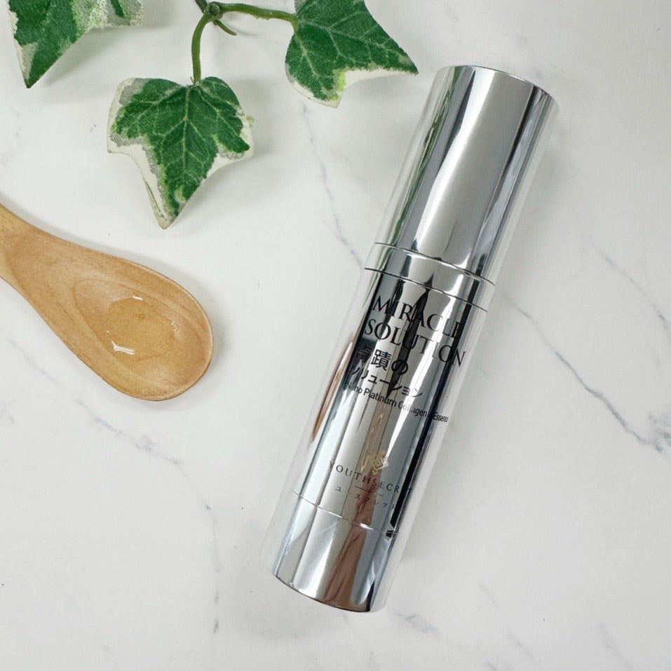 奇蹟のソリューションを使ってみました🥰いつものお風呂上がりに10秒のプラスワン💓ハリ、ツヤ、毛穴の引き締めに期待して洗顔後に使っていますがサラサラしたテクスチャーで生コラーゲン配合のブースター美容液✨顎下からこめかみに気になるほうれい線に目...