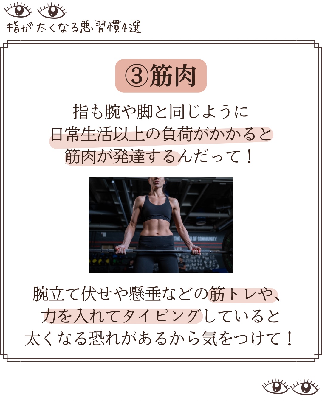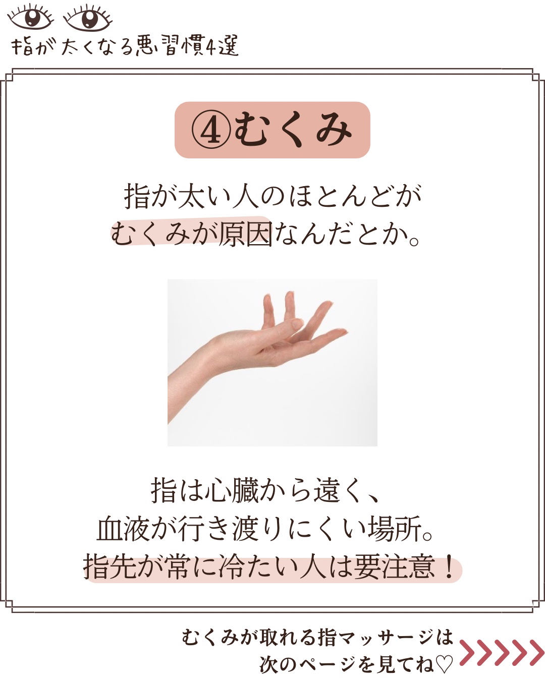指が太くなる原因をまとめてみたよ! ぱち子は昔から指をポキポキと鳴らす癖があるから辞めたい😣 あとはハンドクリーム塗るついでに指のマッサージするように心がけてるよ🫶🏽