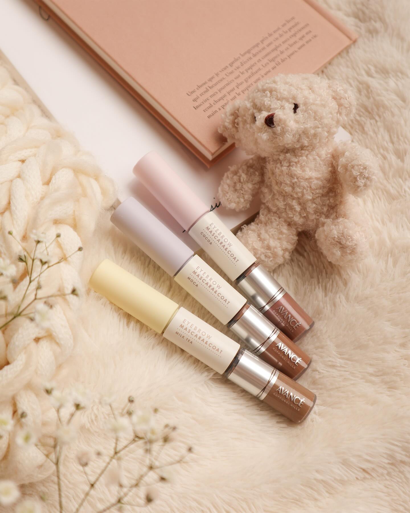 - ミルキーなカラーが可愛いニュアンスカラーの眉マスカラとトップコートのWエンドアイブロウ! アイブロウマスカラは、小回りがきく、先端と根元使い分けられるこだわりブラシを採用。 地肌につきにくく、ふんわりパウダーで眉に立体感を与えてくれます。 アイブロウコートは、アイライナーのような細筆タイプでベタっとならずに、眉尻まで塗れる速乾コート。 水・汗・湿気から眉メイクを守ります! カラーは黒髪、暗髪の方にも合わせやすいナチュラルな3色展開。 〈ココア〉まろやかなくすみピンクよりのニュートラルブラウン。 〈モカ〉まろやかなグレージュよりのニュートラルブラウン。 〈ミルクティー〉まろやかなくすみベージュよりのニュートラルブラウン。 美容液成分(*1)と毛髪補修成分配合(*2)で、メイクしながらケアも忘れない! 2Wayタイプのアイブロウアイテムです。 *1 保湿成分:クオタニウム-51、パンテニルエチル(アイブロウマスカラに配合) *2 アセチルテトラペプチド-3、アカツメクサ花エキス(アイブロウマスカラに配合) / 水添レシチン、加水分解シルク、カミツレ花エキス(アイブロウコートに配合)