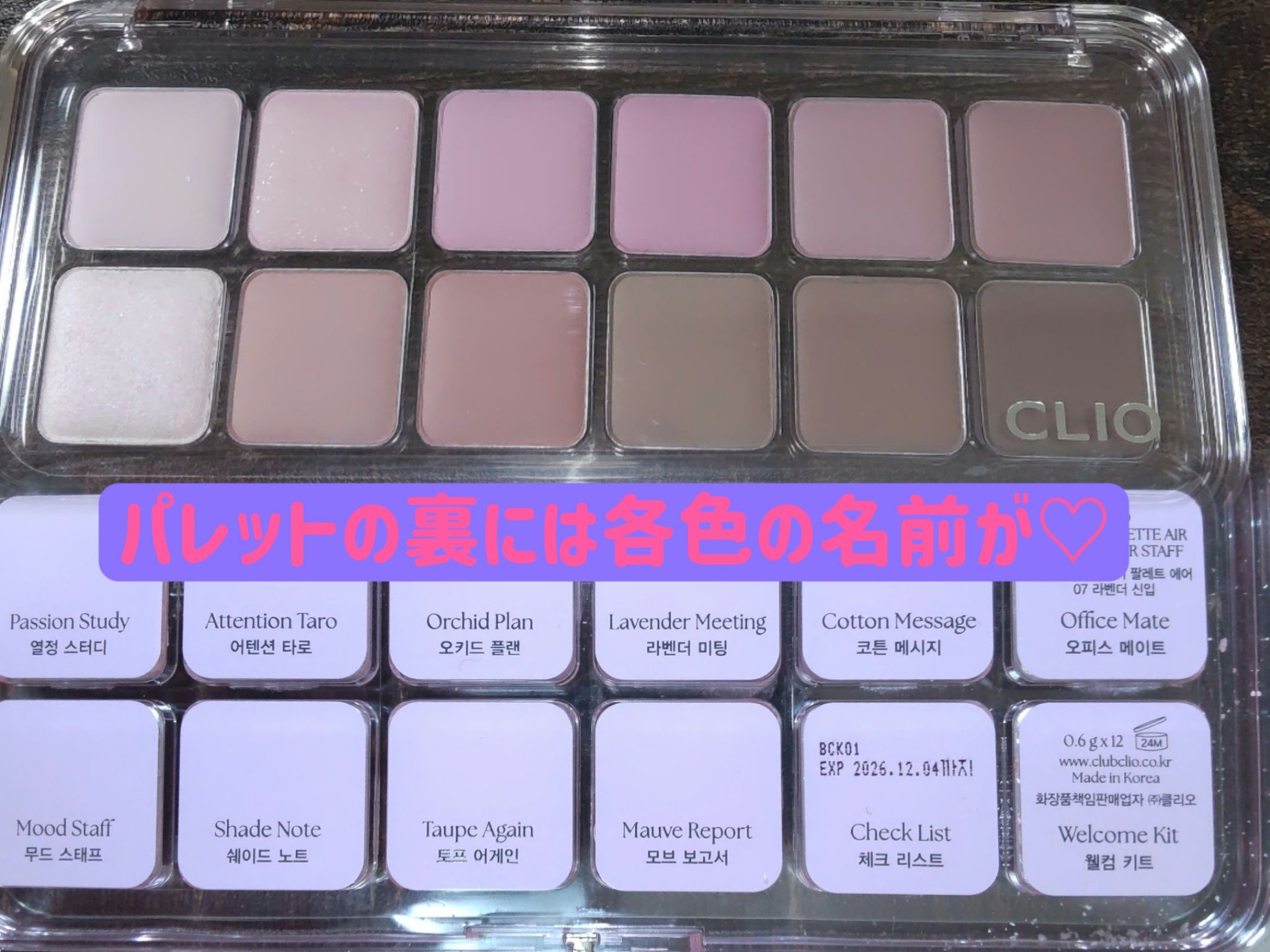 - 軽やかテクスチャーが目元に密着し、抜け感のある色使いが楽しめるデイリーパレット <101 ローズダイアリー(ROSE DIARY)> オーナメントを飾り付けたローズツリーのようにほのかに輝くウォームローズピンクカラー(イエベ秋)。 <102 ミュートアーカイブ(MUTE ARCHIVE)> 少女たちのピンキーなホームパーティームードを盛り込んだクールでヌーディーなミューテッドモブカラー(ブルべ夏ミュート)。 <103 バニラヘイズ(VANILLA HAZE)> 焼きたてのジンジャークッキーのように暖かく香ばしいウォームミュートカラー(イエベ秋ミュート)。 <104 GHR ピンク(GYEONGHOERU FLOWER FESTIVAL)> 春の日の美しく優雅な色を詰め込んだピンクカラーパレット。イエベ春&ブルベ夏におすすめのパレットです。 <105 DSG バイオレット(DEOKSUGUNG STONE WALL ROAD)> ほんのりピンクがかった柔らかなモーブカラーパレット。ブルベ夏&ブルベ冬におすすめのパレットです。 <106 DBG コーラル(GYEONGBOKGUNG STROLL)> 明るい日差しの色を取り入れたデイリーなコーラルカラー。イエベ春&ブライト秋におすすめのパレットです。