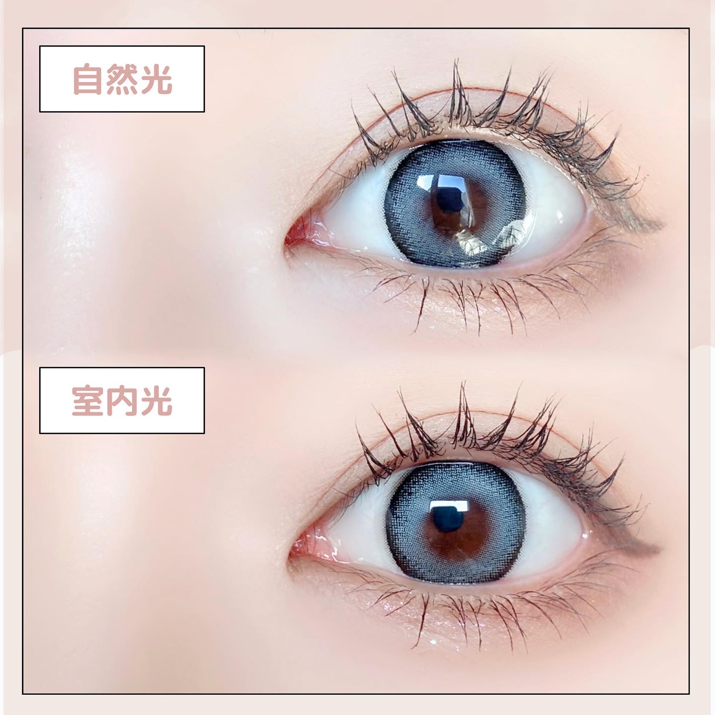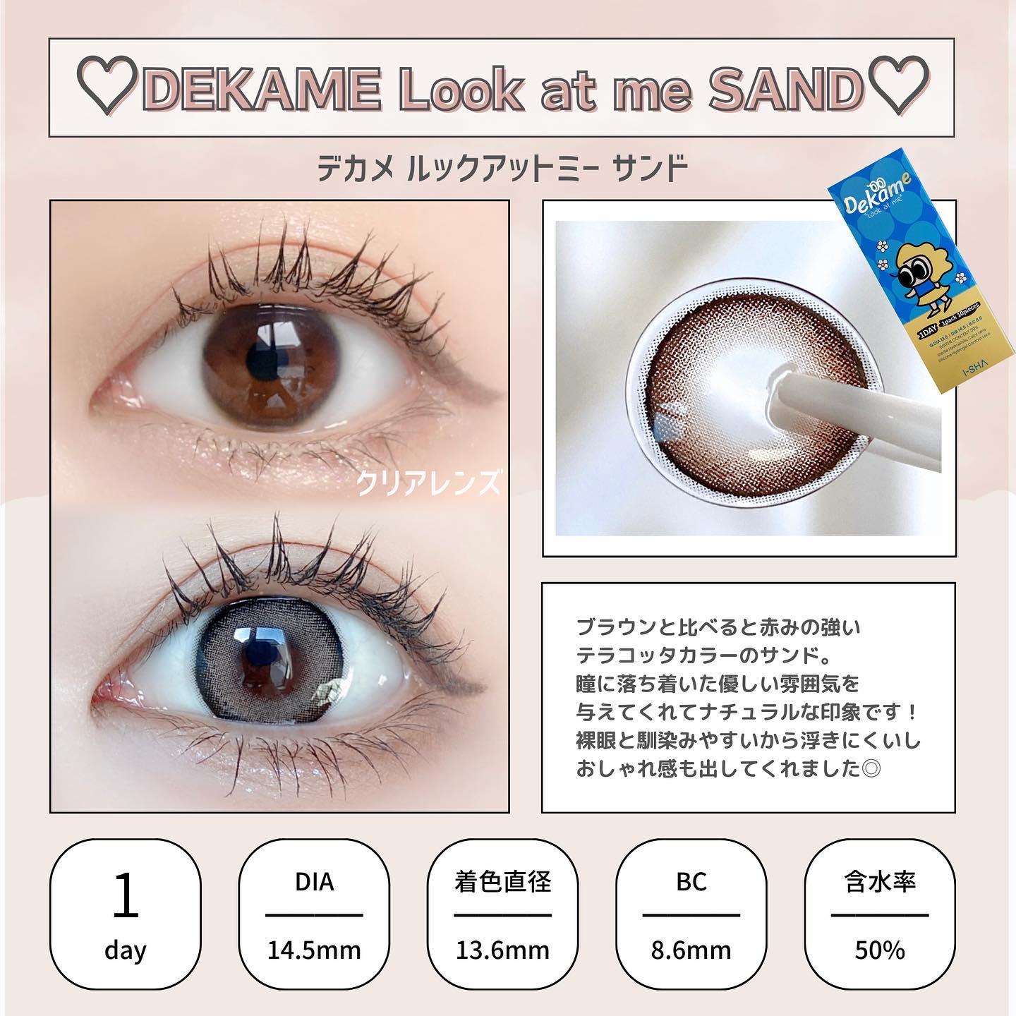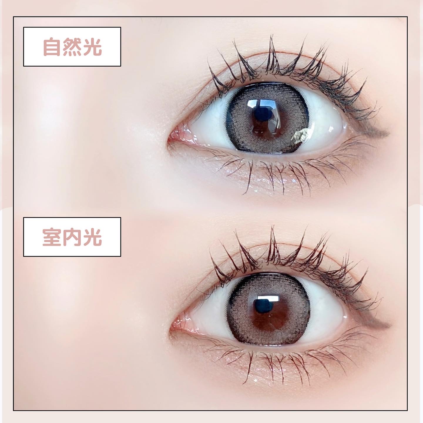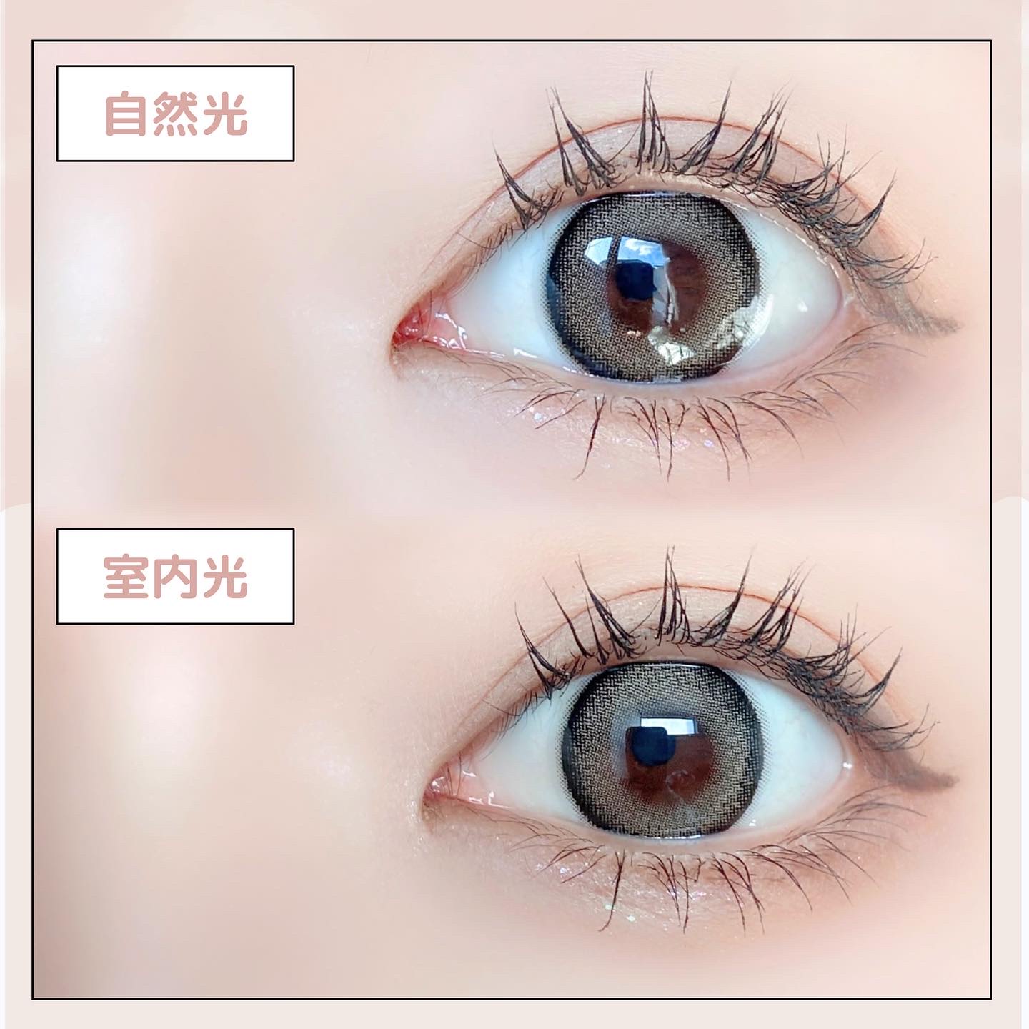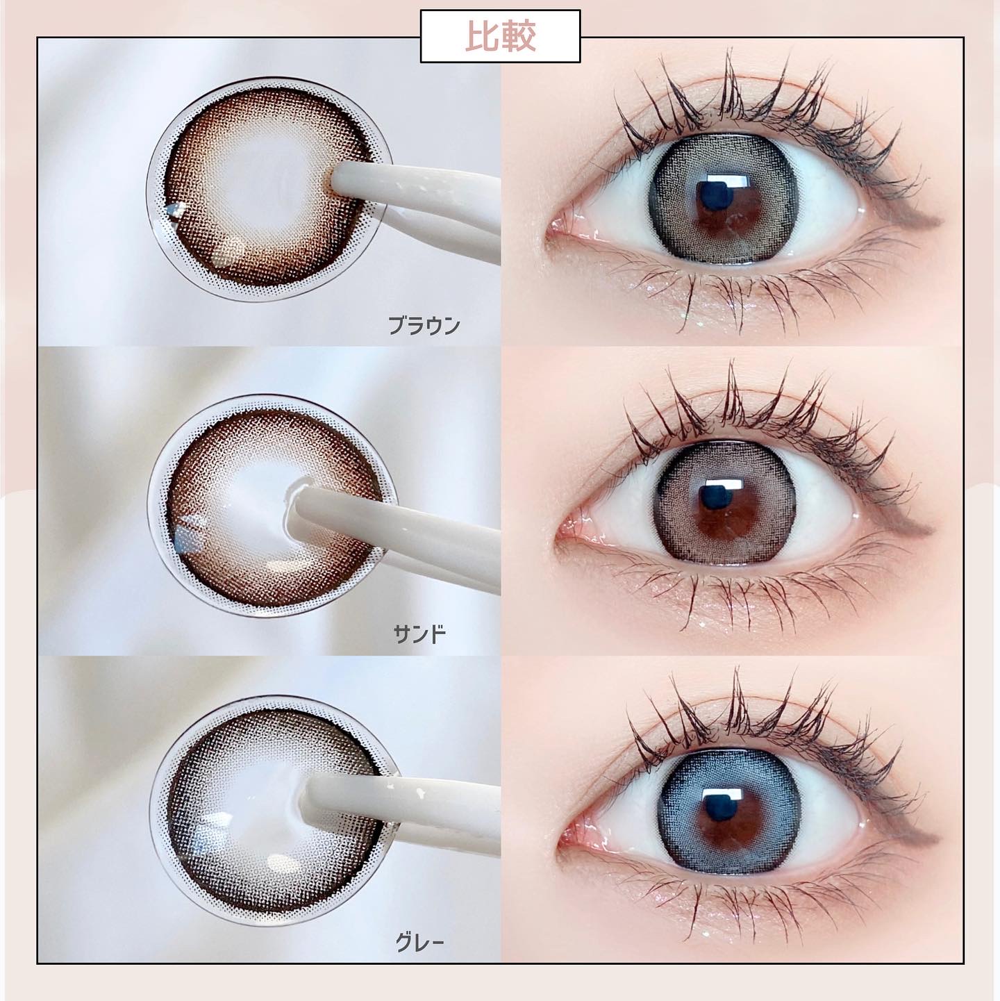 キャンマジ新色出たよ💕 馴染む立体感がヨジャドルっぽくて新色の中で1番よく使ってるカラー。 どんなメイクとも相性がいいので使いやすいです! 着色直径よりも体感大きめに感じるのも🙆🏻♀️ オレンジ感の少ないブラウンだから口紅やチーク次第で幼くも大人っぽくもなれる。 浮かない太めフチで可愛いさ溢れてます✨ レンズ単体だとめちゃくちゃピンクなのかなと思ったけど着けたら馴染みました💕 パキッとしないのでほわほわしたピンクが好きな人やラメメイクが好きな人にもおすすめ◎