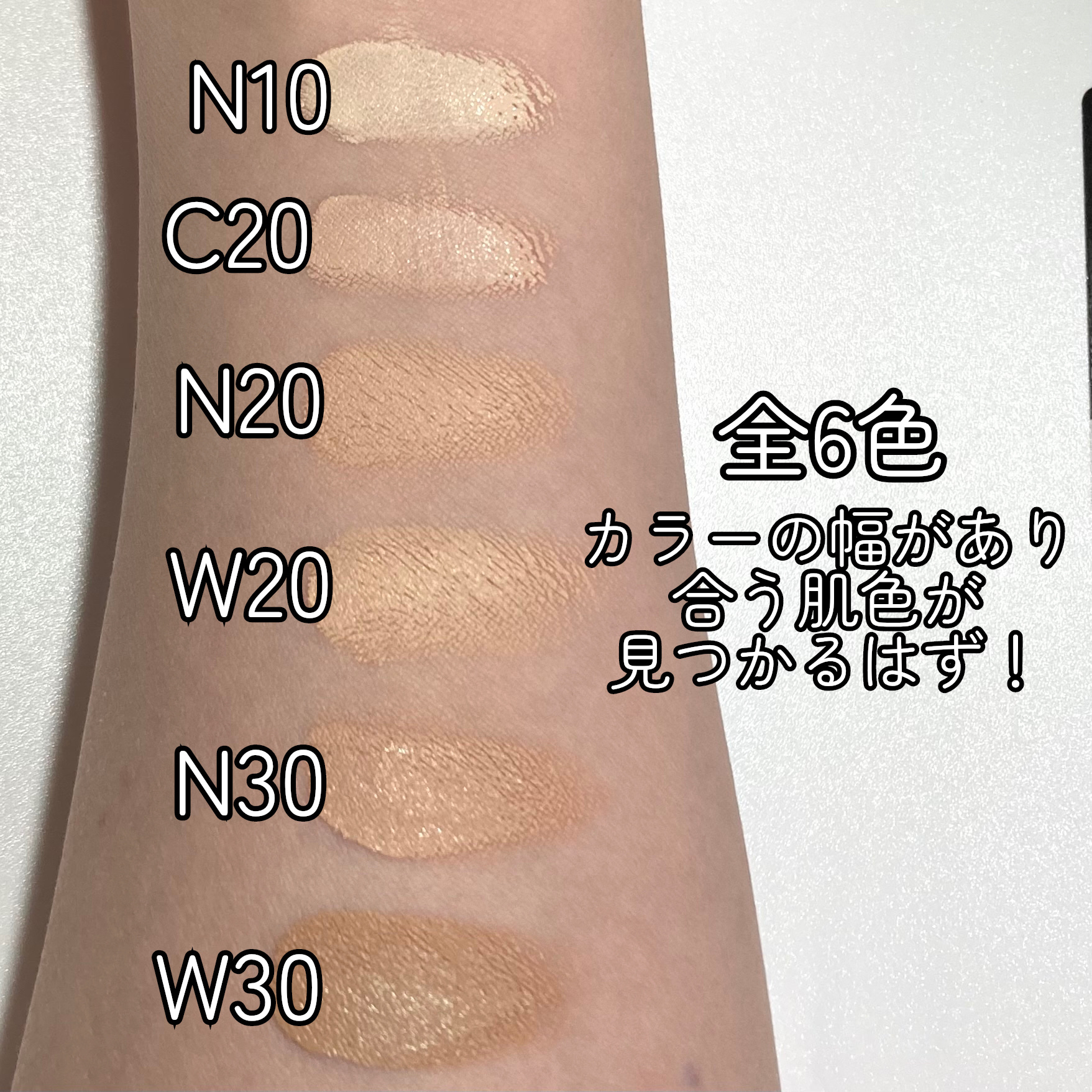 生チョコ感覚バームというなめらかなバームタイプのファンデーション!するっと塗りやすかったです。重ねても厚塗り感が出なくてよかった! 全部で4色展開です。N10は一番明るいカラー。 N20はイエロー寄りに感じました。C20はピンク寄りのカラー。 腕に塗ってからティッシュで拭いたり水で洗っても全然落ちなかった!けどさすがにマスクにはちょっと着いちゃうかなぁ。