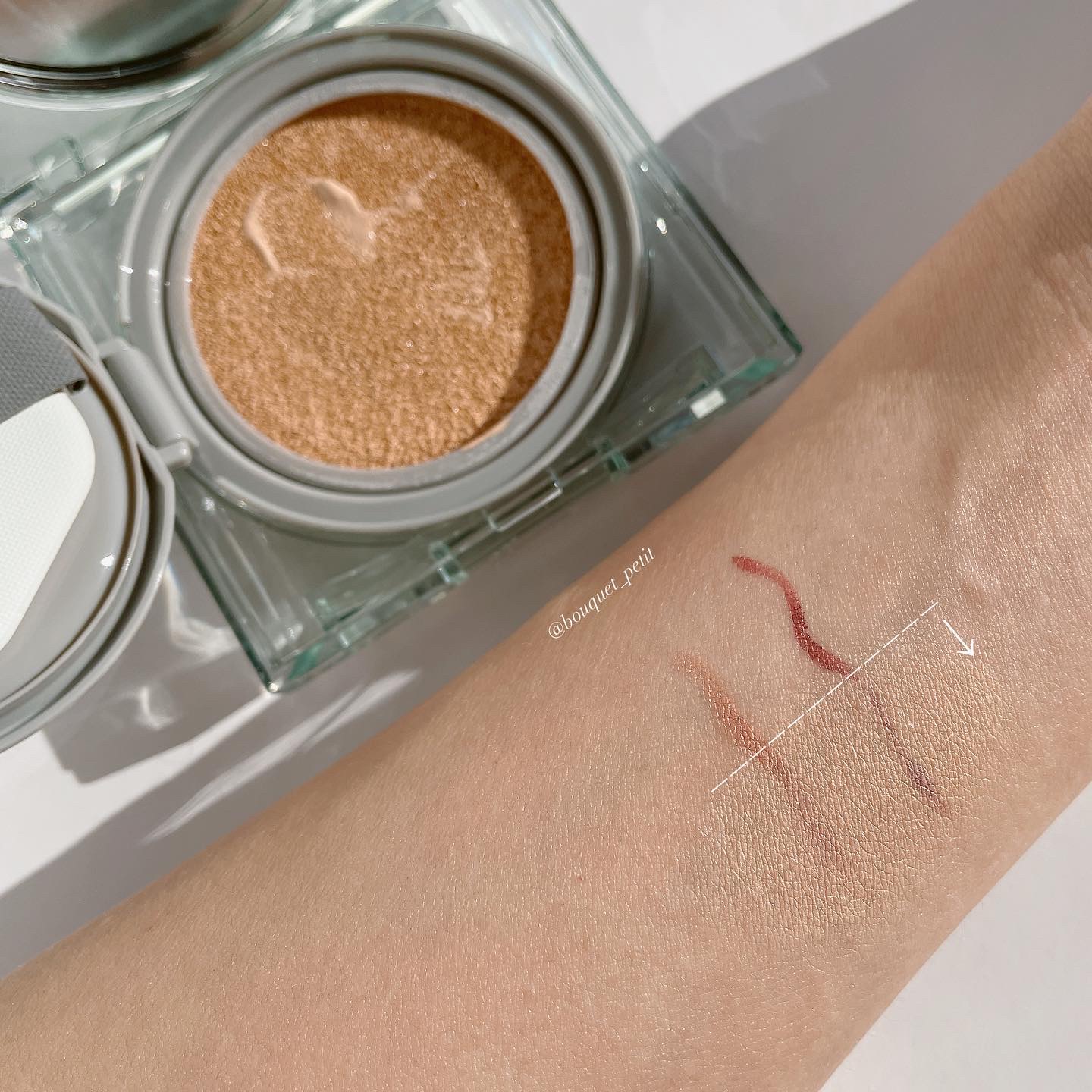 エアリーなサテン仕上がりが特徴のクッションファンデ。カバー力とロングラスティング効果は引き継ぎ、より軽い使い心地になっているのが今回の新作。 毛穴や赤みをフラットにしてくれるので、「もとから肌綺麗ですけど?」なお肌を演出してくれます。 夕方まで崩れにくく乾燥も感じませんでした。