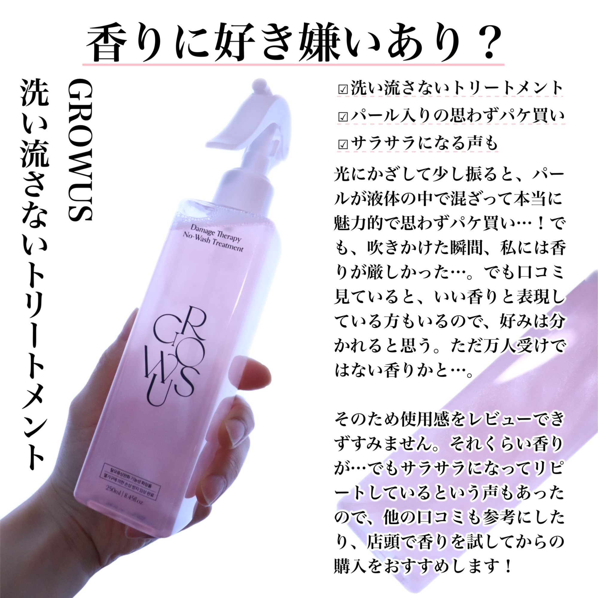 | ヘアケア・スタイリングランキング第120位 | 髪本体だけがサラサラになってベタつかない!香りは柑橘系の爽やかな香りです♡ | 詳細を見る | |