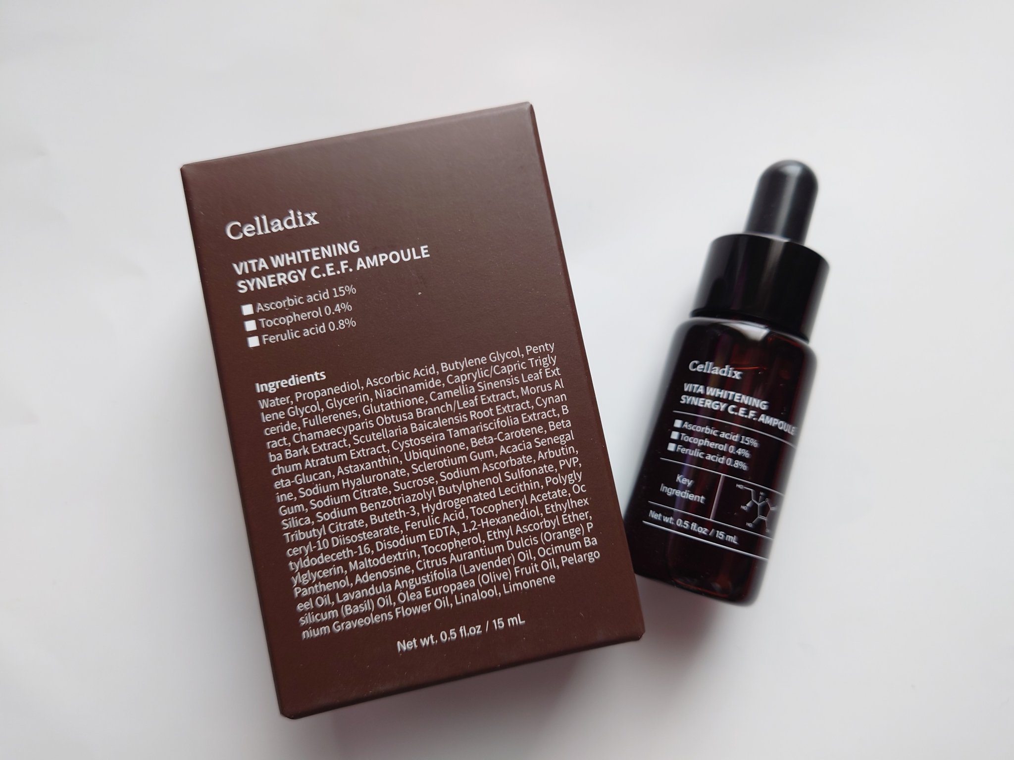 - セラディックス「ビタホワイトニングシナジーC.E.Fアンプル」は乾燥によるくすみが気になる肌に集中アプローチした高濃縮アンプルです。 純粋ビタミンC* 15%、ビタミンE *0.4%、ペルリックアシッド*0.8%で肌に潤いを与えてくすみをケアし、透明感あふれる肌へと導きます。 刺激の少ない使い心地でpH濃度3.5、角質層までの浸透をサポートします。 *整肌成分