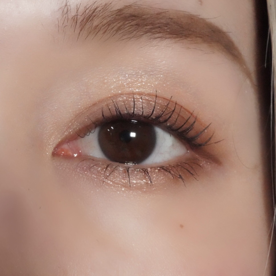 よくパレットのなかで明るいカラーをベースにまぶたに広く塗ることが多いのですが、パール感のあるカラーを避ける🙆♀️! パール感たっぷりの明るいカラーは涙袋に使うぐらい光を集めてぷっくり見せてくれるので、まぶたに広く使うと腫れぼったく見えがち😓 目元を明るくみせてくれたり、次に使うアイシャドウをぼかしやすくしてくれるけど、すっ飛ばしてメインのカラーを塗っちゃう✊🏻❤️🔥 涙袋にはたっぷり塗ってぷっくり見せる🙆♀️💕 シルキースフレアイズのマットタイプはすごく優れているな〜と感じました☺️💗 赤やオレンジなどは、入れすぎると腫れぼったく見えやすいので、見せたいカラーは下まぶた目尻にのせて色をたのしむ♡♡ パール感なしの透けマットだけじゃ物足りない… そう感じさせない華やかなラメが左上に入っているので黒目上と涙袋にのせるとすごく可愛い仕上がりに😍! 厄介な左右差のお陰でマットアイシャドウが好きになりました😌💕