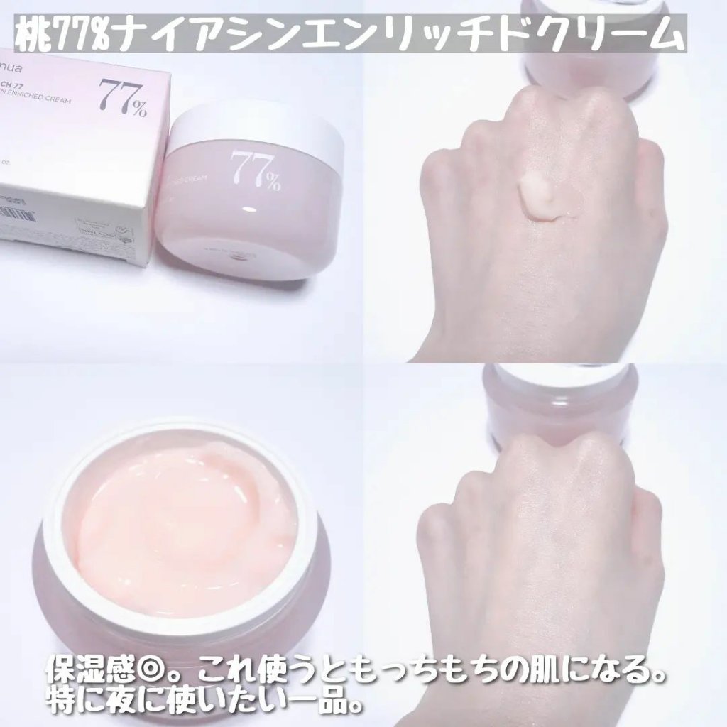 Anuaの煌めく聖夜セットは今回桃セットを購入♡ 桃77%ナイアシンエッセンストナー 250ml、Anua桃70%ナイアシンセラム、桃77%ナイアシンコンディショニングミルク、桃77%ナイアシンリッチモイスチャークリームの4つとさらに! 桃のいい香りがしてどれも当たりでした♡ 桃77%ナイアシンエッセンストナー 250mlはとてもとろっとしたテクスチャー、桃77%ナイアシンコンディショニングミルクも程よいとろっと感、桃77%ナイアシンリッチモイスチャークリームはこっくりとしたテクスチャー。 おまけのドクダミ ポアコントロールクレンジングオイルはとてもさっぱりとした使用感に感じました。メイク落ちも良い♡ Anuaのセットは毎回メガ割でありますが、今回はおまけとともにとてもお得に感じました。