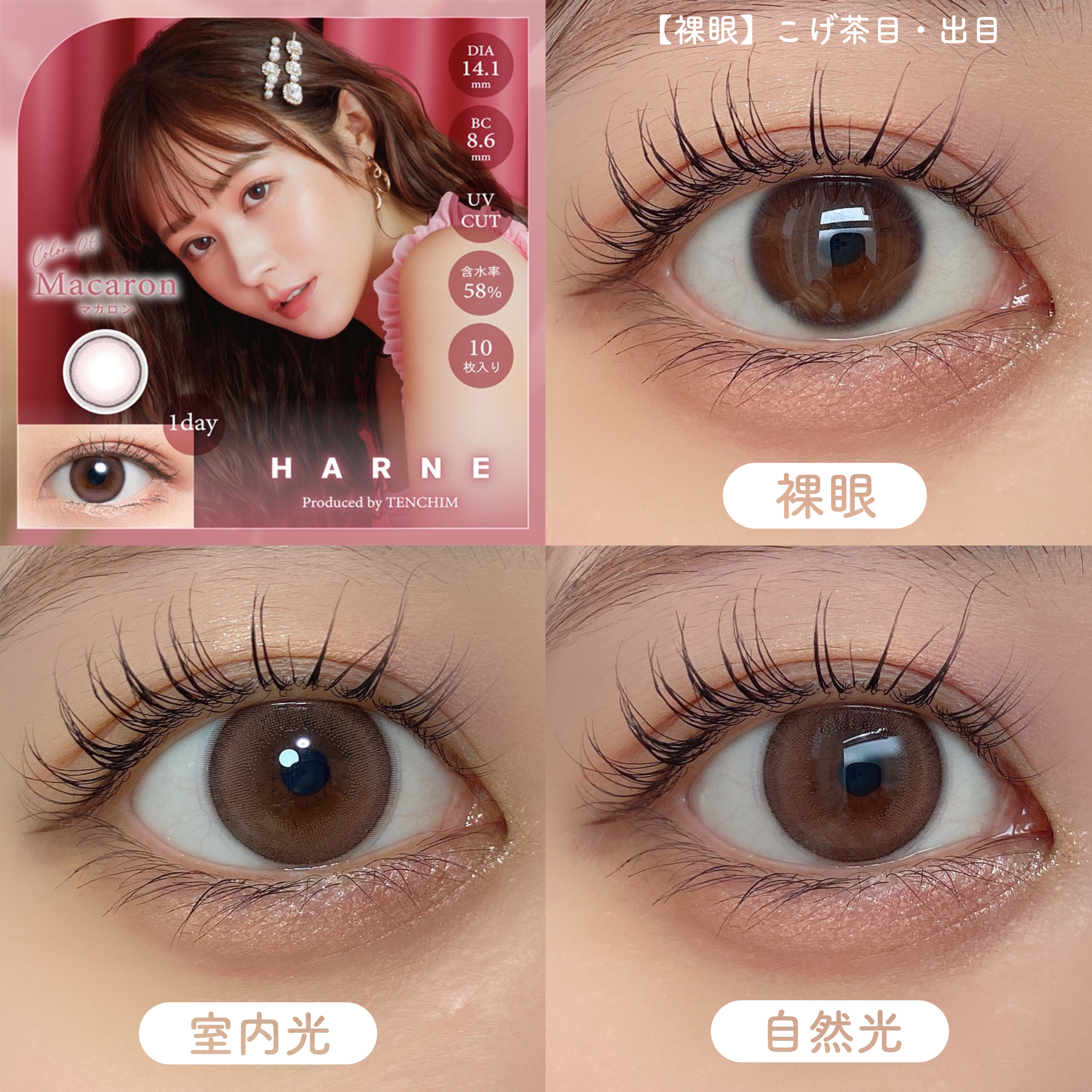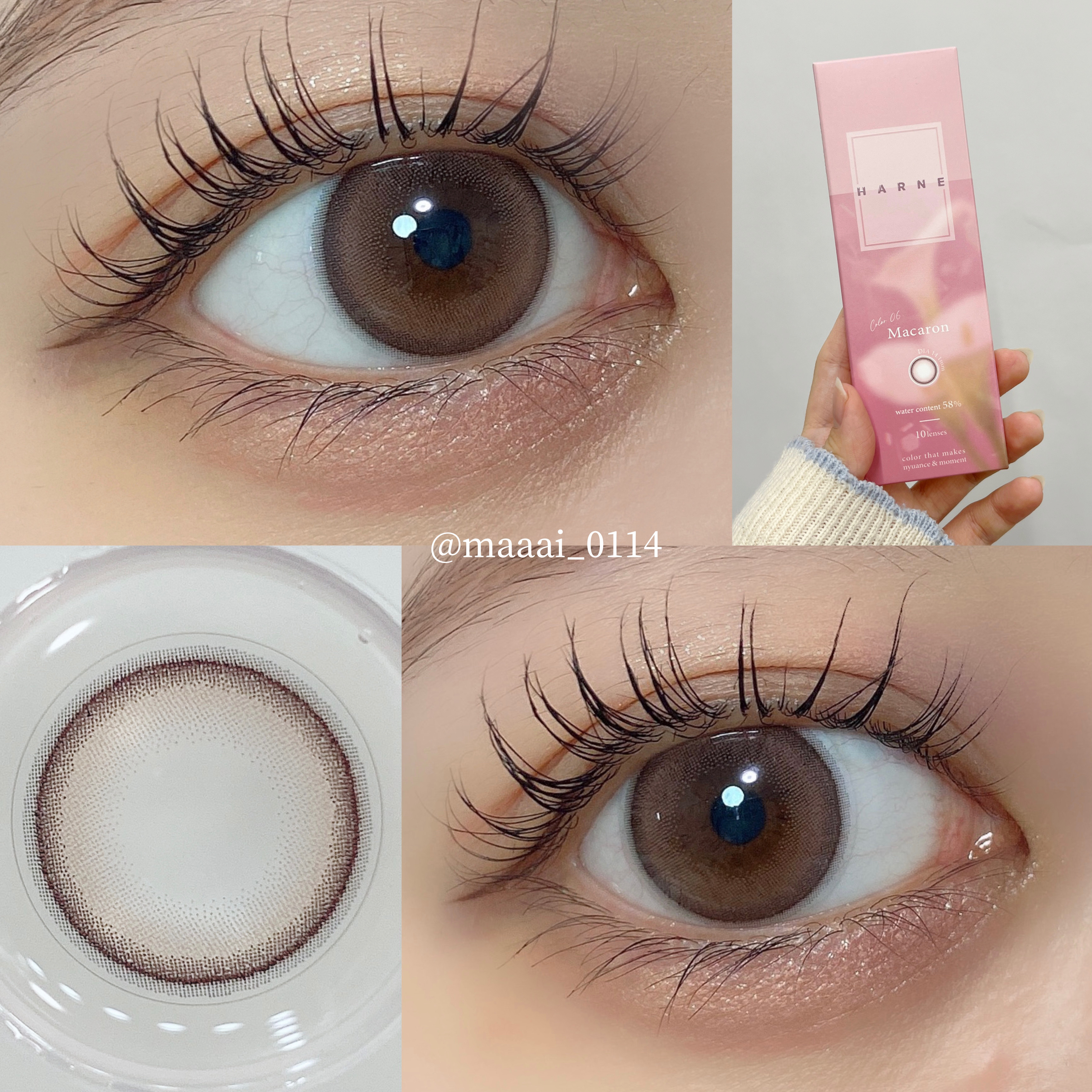 HARNE新色としてマカロンの色違いカラー フィナンシェ&チャイナブルーが登場したよ🪽 てんちむちゃんのこだわりポイントはズバリ色!浮いたり馴染みが悪くならないように色素薄い色を狙いすぎない程よいうっすらベージュ✨ 黒目がつけても派手見えしない絶妙なニュアンスブルーが綺麗すぎる💎