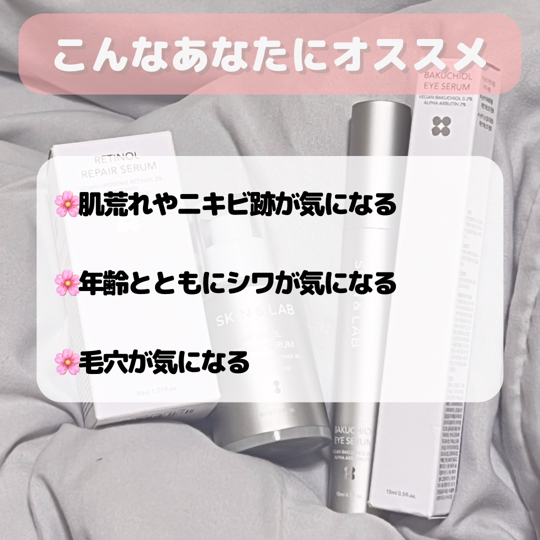 植物性で刺激を減らしたヴィーガンリポソームレチノール。3月に発売したSKIN&LABの新商品! 毛穴より238倍小さいヴィーガンリポソームレチノールが3%配合され、メラニンの生成を抑えしみそばかすを防ぎ、毛穴ケアや肌ハリをアップしてくれるセラム 柔らかいテクスチャーのクリーム様のセラム。すーっと伸びて肌馴染みがよく、ベタつかない使用感で心地よいです。