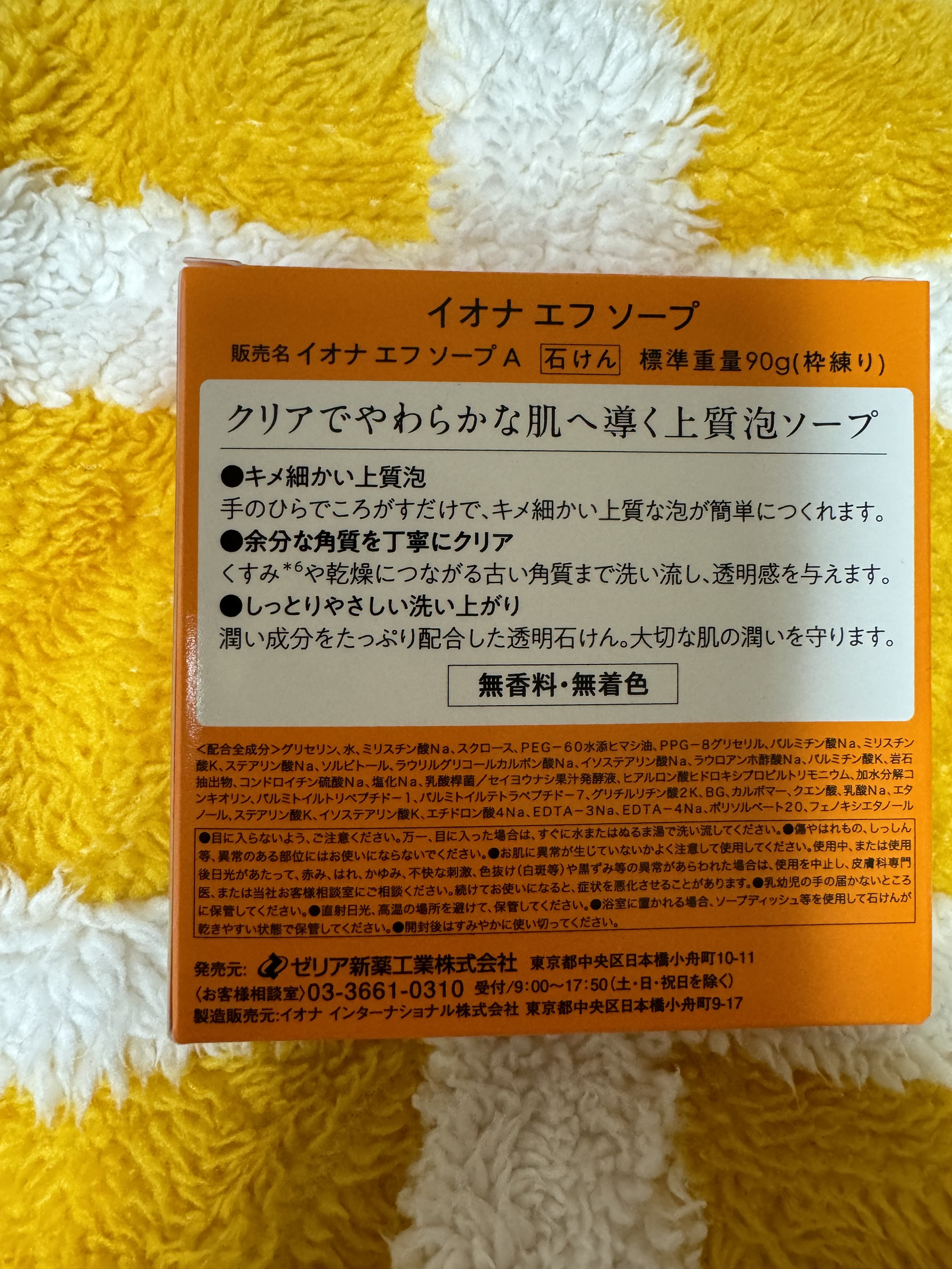 50パーセント以上が保湿成分(グリセリン) イオナエフソープは、 泡立ちはよくて、上質なキメ細かい泡なの。 酸化した皮脂や古い角質などの、肌表面の 酸性汚れを落とすのが得意な くすみ、ごわつきが気になる方におすすめの 弱アルカリの石鹸です。