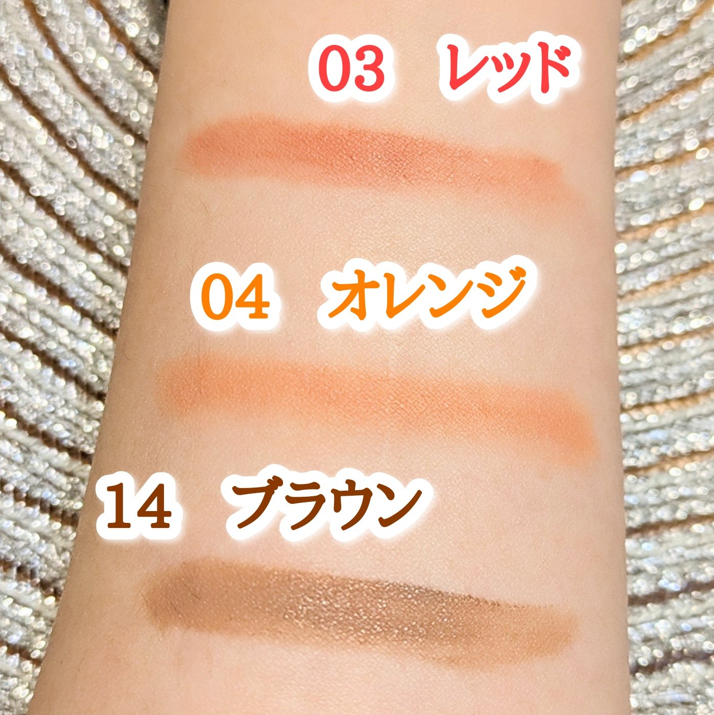 さらさらの仕上がりで、セミマット。 【03】は、オレンジの色味が強いので、クマのカバーにぴったりだと思います◎ カバー力も高いです✨ マフラーにもつきにくく、冬に使いやすいと思いました🧣 陶器肌のような仕上り✨ カバー力が高い⤴⤴ 崩れにくい SPFとPA指定なし 蓋に貼ってあるシールが残念💦 印刷の方が、高級感が出るかと思いました。