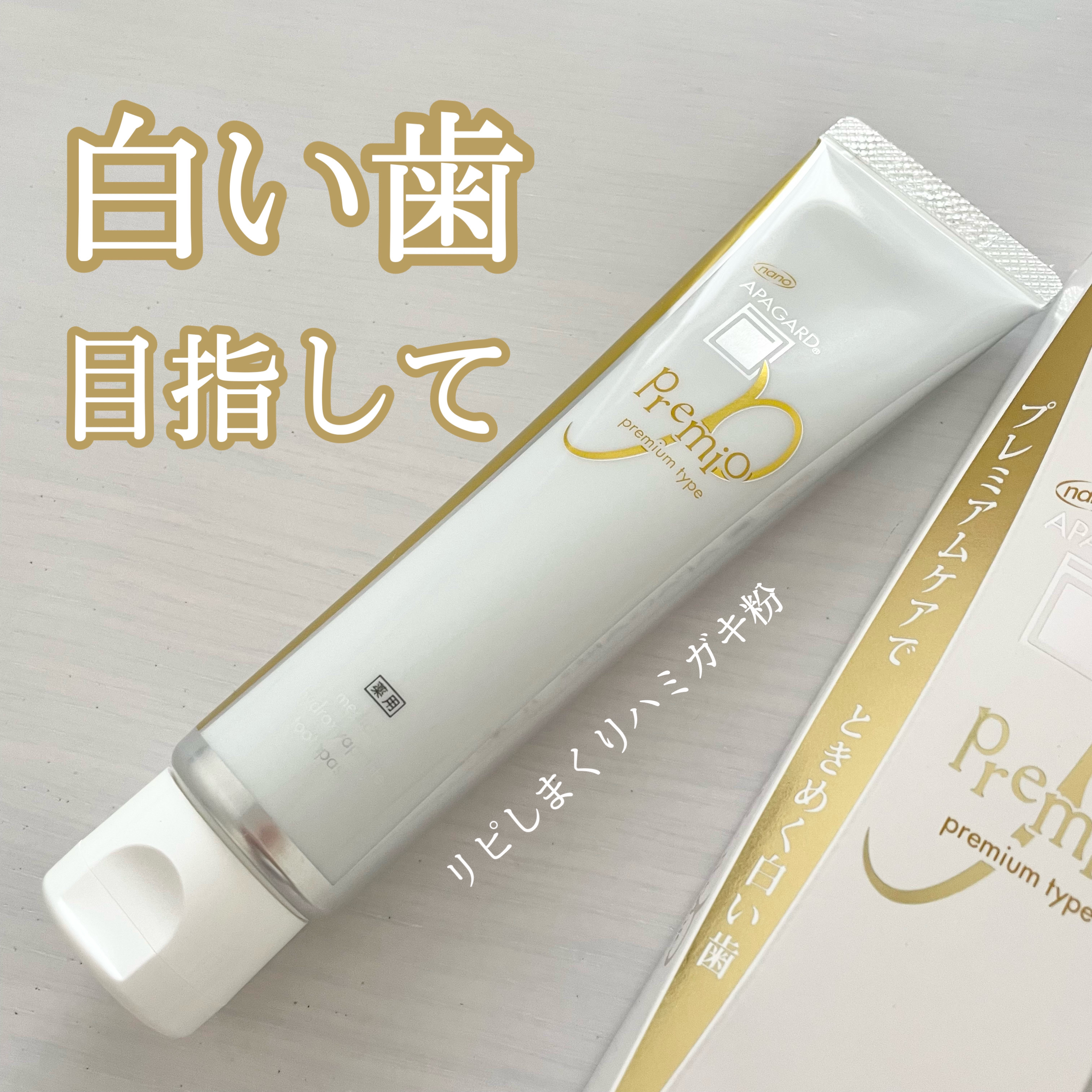 - 【医薬部外品】 独自成分「薬用ハイドロキシアパタイト」がエナメル質を整えてむし歯を予防。アパガードはエナメル質の健康を保つことで自然な白い歯に導く美白歯みがきブランド。アパガードプレミオは「薬用ハイドロキシアパタイト」を高配合(スタンダードタイプ比)。プレミアムケアでときめく白い歯に。 <ライトミント> ●サンギ独自の薬用成分ナノ粒子「薬用ハイドロキシアパタイト」を高配合したプレミアムタイプ。※Mプラス、スモーキン比 ●歯の再石灰化率、白色度もアップ。 ●歯垢を吸着除去し、歯のエナメル質の目に見えない傷を埋め、ミネラル欠損部(初期むし歯)を再石灰化するナノ<mHAP>の3つの働きで、むし歯を予防。 ●パール成分(加水分解コンキオリン液)配合。 <エクストラミント> ●強めのミントがお好みの方におススメ!ミント強めの「エクストラミント」フレーバー。 ●サンギ独自の薬用成分ナノ粒子「薬用ハイドロキシアパタイト」を高配合したプレミアムタイプ。※Mプラス、スモーキン比 ●歯垢を吸着除去、エナメル質表面の目に見えない傷を埋めてなめらかに、エナメル質から溶け出したミネラルを補給(再石灰化)する、という薬用ハイドロキシアパタイトの3つの作用でむし歯を予防。 ●パール成分(加水分解コンキオリン液)を追加したブライトニング処方