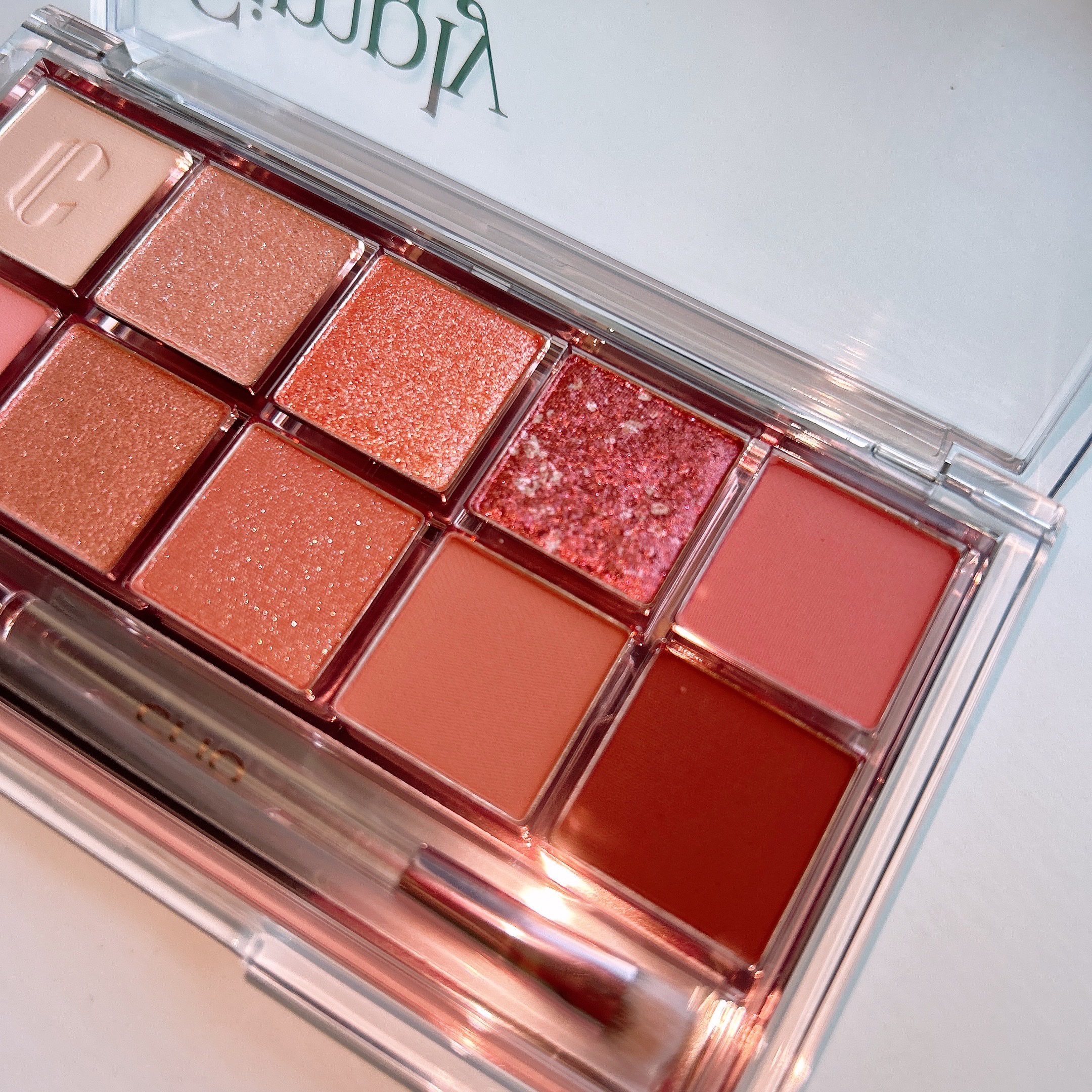 - ひとつのパレットにマット、シマー、グリッターなど多様な質感を贅沢に使用。塗る順序やカラーの組み合わせを変えるだけでデイリーメイクにも、特別な日のお出かけメイクにもできる優れもの。また粉飛びせず、まぶたにしっかり密着します。