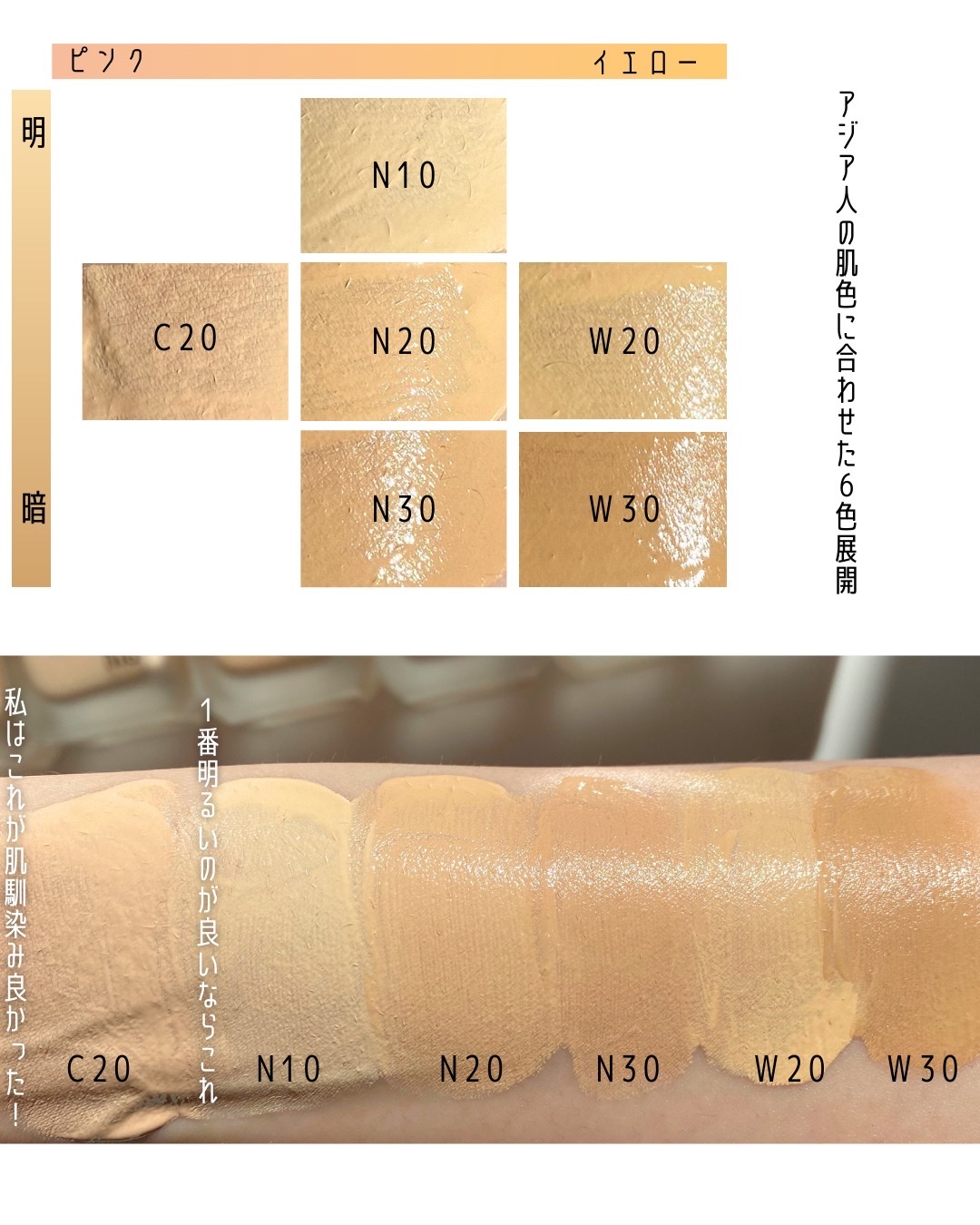 - <C20> 水、ジメチコン、イソドデカン、エタノール、トリメチルシロキシケイ酸、BG、PEG-10ジメチコン、パーライト、ナイロン-12、ラウロイルサルコシンイソプロピル、セバシン酸ジイソプロピル、(HDI/トリメチロールヘキシルラクトン)クロスポリマー、ビス(PEG/PPG-14/14)ジメチコン、ジステアルジモニウムヘクトライト、硫酸Mg、フェノキシエタノール、ステアロイルグルタミン酸2Na、シリル化シリカ、テトラ(ヒドロキシステアリン酸/イソステアリン酸)ジペンタエリスリチル、加水分解ダイズタンパク、プロリン、PEG/PPG/ポリブチレングリコール-8/5/3グリセリン、トコフェロール、ナイアシンアミド、香料、グリセリン、シリカ、グルタミン酸、リモネン、ペンチレングリコール、(アクリル酸グリセリル/アクリル酸)コポリマー、リナロール、[+/-]、酸化チタン、酸化鉄、合成フルオロフロゴパイト、水酸化Al、マイカ、酸化スズ <N10> 水、ジメチコン、イソドデカン、エタノール、トリメチルシロキシケイ酸、BG、PEG-10ジメチコン、パーライト、ナイロン-12、ラウロイルサルコシンイソプロピル、セバシン酸ジイソプロピル (HDI/トリメチロールヘキシルラクトン)クロスポリマー、ビス(PEG/PPG-14/14)ジメチコン、ジステアルジモニウムヘクトライト、硫酸Mg、フェノキシエタノール、ステアロイルグルタミン酸2Na、シリル化シリカ、テトラ(ヒドロキシステアリン酸/イソステアリン酸)ジペンタエリスリチル、加水分解ダイズタンパク、プロリン、PEG/PPG/ポリブチレングリコール-8/5/3グリセリン、トコフェロール、ナイアシンアミド、香料、グリセリン、シリカ、グルタミン酸、リモネン、ペンチレングリコール (アクリル酸グリセリル/アクリル酸)コポリマー、リナロール、[+/-]、酸化チタン、酸化鉄、合成フルオロフロゴパイト、水酸化Al、マイカ、酸化スズ <N20> 水、ジメチコン、イソドデカン、エタノール、トリメチルシロキシケイ酸、BG、PEG-10ジメチコン パーライト、ナイロン-12、ラウロイルサルコシンイソプロピル、セバシン酸ジイソプロピル (HDI/トリメチロールヘキシルラクトン)クロスポリマー、ビス(PEG/PPG-14/14)ジメチコン、ジステアルジモニウムヘクトライト、硫酸Mg、フェノキシエタノール、ステアロイルグルタミン酸2Na、シリル化シリカ、テトラ(ヒドロキシステアリン酸/イソステアリン酸)ジペンタエリスリチル 加水分解ダイズタンパク、プロリン、PEG/PPG/ポリブチレングリコール-8/5/3グリセリン トコフェロール、ナイアシンアミド、香料、グリセリン、シリカ、グルタミン酸、リモネン、ペンチレングリコール(アクリル酸グリセリル/アクリル酸)コポリマー、リナロール、[+/-]、酸化チタン、酸化鉄、合成フルオロフロゴパイト、水酸化Al、マイカ、酸化スズ <N30> 水、ジメチコン、イソドデカン、エタノール、トリメチルシロキシケイ酸、BG、PEG-10ジメチコン、パーライト、ナイロン-12、ラウロイルサルコシンイソプロピル、セバシン酸ジイソプロピル (HDI/トリメチロールヘキシルラクトン)クロスポリマー、ビス(PEG/PPG-14/14)ジメチコン、ジステアルジモニウムヘクトライト、硫酸Mg、フェノキシエタノール、ステアロイルグルタミン酸2Na、シリル化シリカ、テトラ(ヒドロキシステアリン酸/イソステアリン酸)ジペンタエリスリチル 加水分解ダイズタンパク、プロリン、PEG/PPG/ポリブチレングリコール-8/5/3グリセリン トコフェロール、ナイアシンアミド、香料、グリセリン、シリカ、グルタミン酸、リモネン、ペンチレングリコール(アクリル酸グリセリル/アクリル酸)コポリマー、リナロール、[+/-]、酸化チタン、酸化鉄、合成フルオロフロゴパイト、水酸化Al、マイカ、酸化スズ <W20> 水、ジメチコン、イソドデカン、エタノール、トリメチルシロキシケイ酸、BG、PEG-10ジメチコン パーライト、ナイロン-12、ラウロイルサルコシンイソプロピル、セバシン酸ジイソプロピル (HDI/トリメチロールヘキシルラクトン)クロスポリマー、ビス(PEG/PPG-14/14)ジメチコン、ジステアルジモニウムヘクトライト、硫酸Mg、フェノキシエタノール、ステアロイルグルタミン酸2Na、シリル化シリカ、テトラ(ヒドロキシステアリン酸/イソステアリン酸)ジペンタエリスリチル 加水分解ダイズタンパク、プロリン、PEG/PPG/ポリブチレングリコール-8/5/3グリセリン トコフェロール、ナイアシンアミド、香料、グリセリン、シリカ、グルタミン酸、リモネン、ペンチレングリコール(アクリル酸グリセリル/アクリル酸)コポリマー、リナロール、[+/-]、酸化チタン、酸化鉄、合成フルオロフロゴパイト、水酸化Al、マイカ、酸化スズ <W30> 水、ジメチコン、イソドデカン、エタノール、トリメチルシロキシケイ酸、BG、PEG-10ジメチコン、パーライト、ナイロン-12、ラウロイルサルコシンイソプロピル、セバシン酸ジイソプロピル (HDI/トリメチロールヘキシルラクトン)クロスポリマー、ビス(PEG/PPG-14/14)ジメチコン、ジステアルジモニウムヘクトライト、硫酸Mg、フェノキシエタ