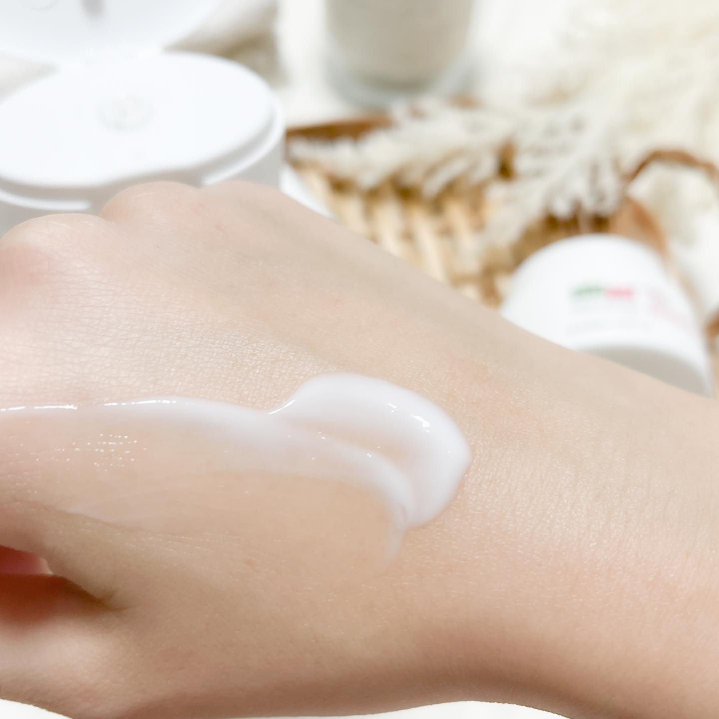 角質層に直接働き素肌しっとり。 有効成分の天然型ビタミンEと グリチルリチン酸ニカリウム(消炎成分)が 皮フから直接吸収され、 あれてカサつく手・肌をしっとり なめらかに保ちます。 大豆から抽出したレシチン(添加物;乳化剤)を 保湿剤として配合。 これ一つで 手だけでなく、顔や身体にも使えちゃう全身保湿 クリームです( ˶ˆ꒳ˆ˵ ) 肌に馴染みがよく、 肌に密着している感じがあります😊💖💖 保湿感が高めのクリームって 結構べたつきが気になることが あったんですが・・・ これはいやなべたつき感はありませんでした‼️ なので、冬だけでなく夏にも使えそう!! 香りはなく無臭に近いです❣️ 寝る前に手にたっぷりめに塗って 手袋をはめて寝るようにしています🧸💓 容量も多くコスパもすごくいいですね!! 冬の寒さかつコロナ禍であり アルコール消毒による乾燥で手荒れが 収まらなかったので 使い続けていこうと思います( ˶ˆ꒳ˆ˵ )