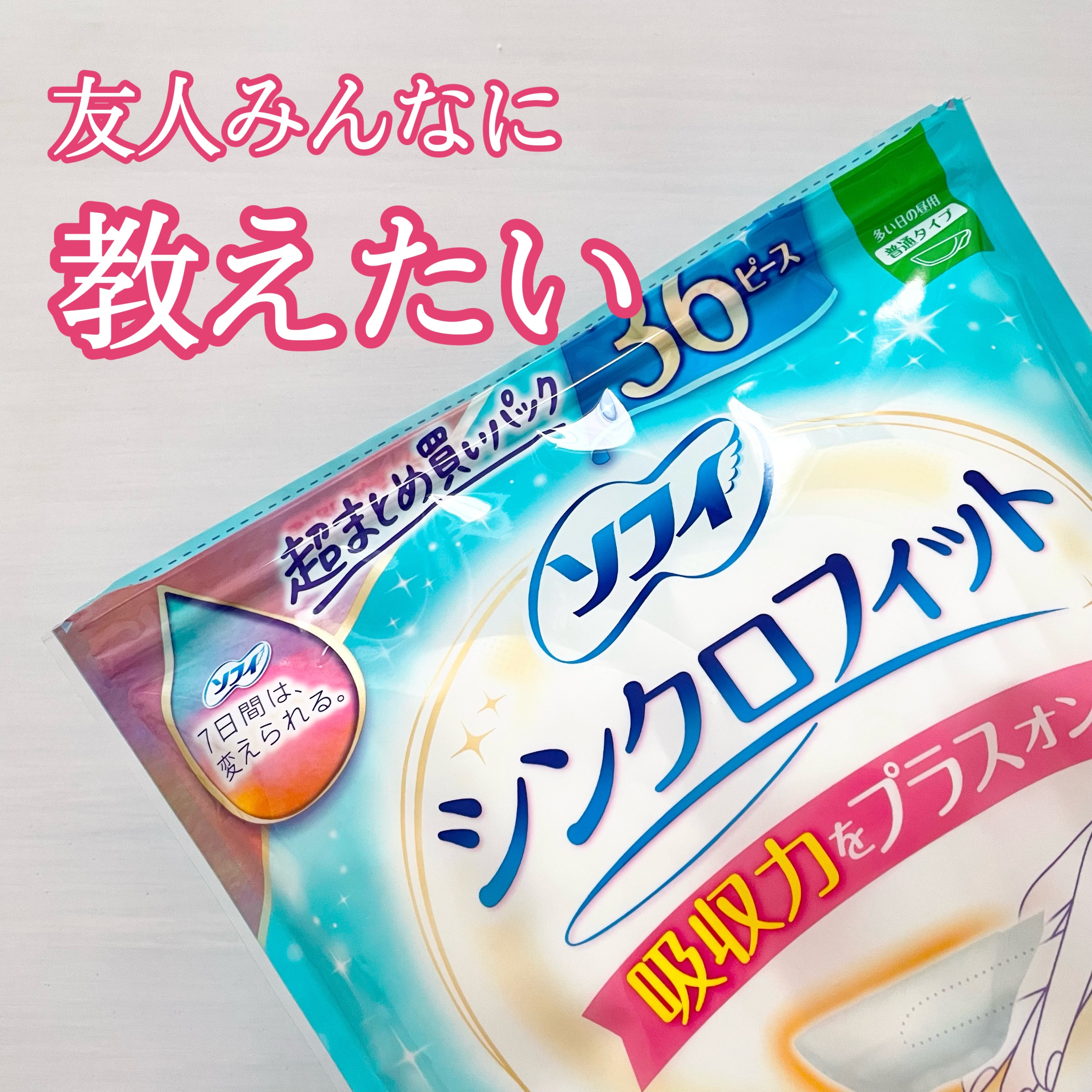 仕事で手が開かない時や多い日の就寝時 いい仕事してくれます✨ こちらとアクティブな時に使うナプキンがあると経血がもれる心配がぐんと減るので安心します😮💨 救世主✨ ソフィ シンクロフィット 多い日の昼用
