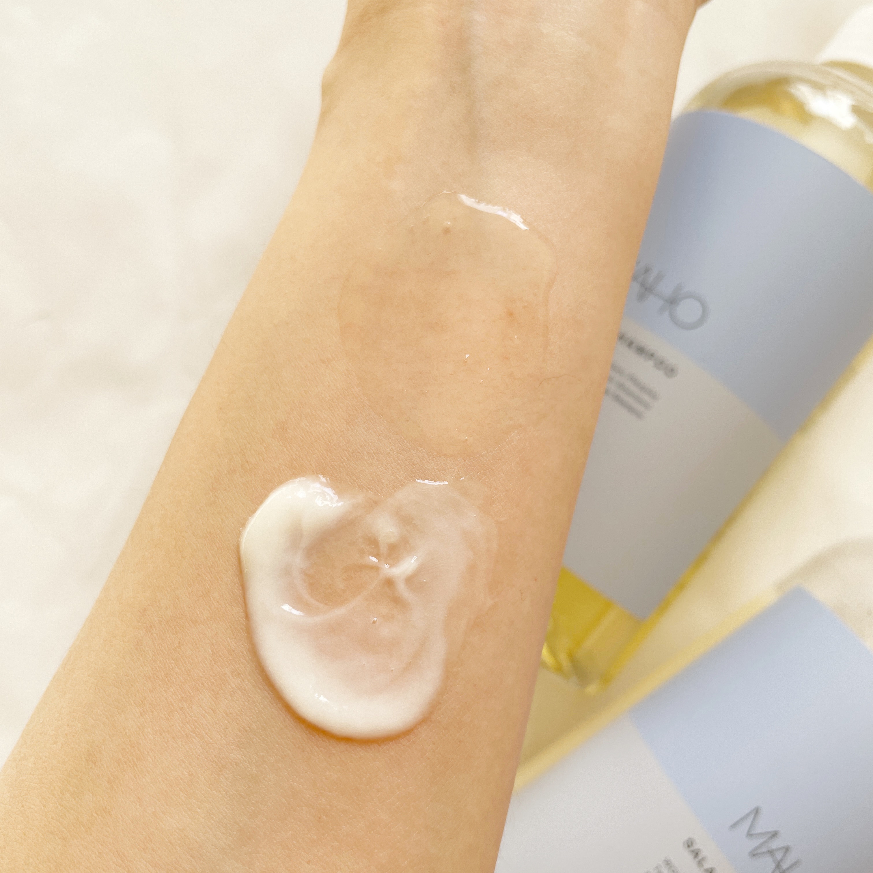 厳選された5種の保湿成分配合 ・ハチミツ ・シアバター(シア脂) ・ツバキ種子油 ・カミツレ花エキス ・ザクロ果実エキス アミノ酸・弱酸性処方で天然由来成分91%配合。緩めのテクスチャーでノンシリコンだけどきめ細かなもっちり泡で優しい洗い心地☺️ ドライヤーで乾かした後は自然にまとまり指通りがいいです。サラッとふわっとした仕上がりになるのが◎
