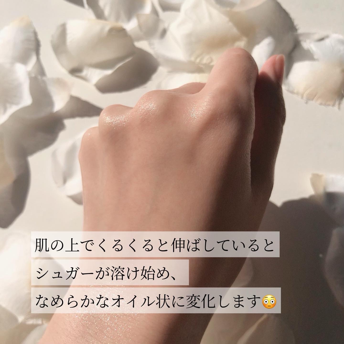 とろっ!むにっ!(この例えが合っているのか怪しいですが、こんな感じです!笑)とした不思議なテクスチャー👀 じゃりザラといった感じ! 大きめの粒がたくさん入っているので、伸ばす時は、肌を傷つけないように やさし〜く伸ばしています😌 じゃりじゃりザラザラとした感じのスクラブですが 体温や水蒸気、水分などによってシュガーが溶け、 なめらかなオイル状に変化!!! FLEUR SOAP(フレールソープ)という 上品でやさしく華やかな感じの香りで 個人的に大好きです💓 他の香りも良い香りがしそうなので、 すっごく気になっています🫶