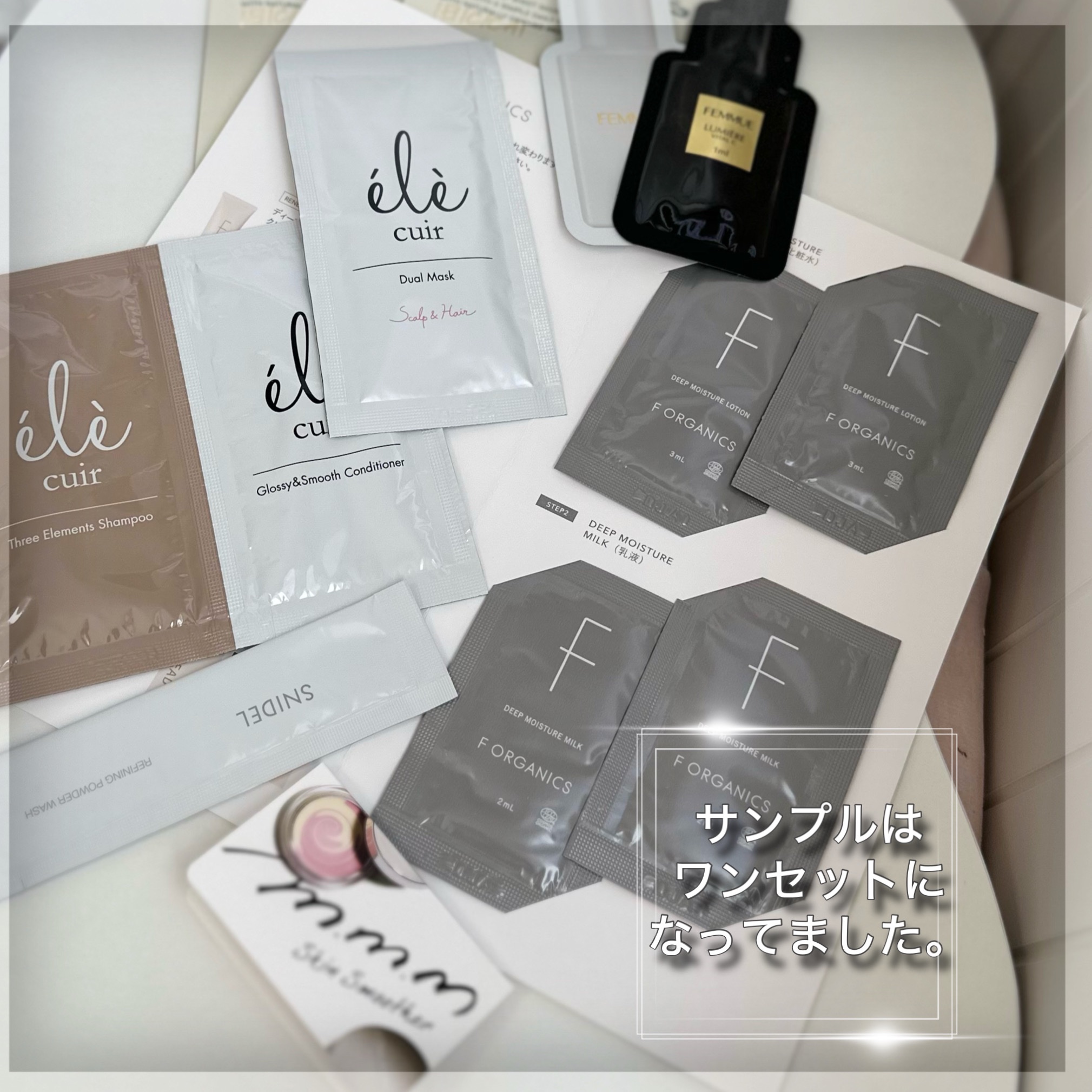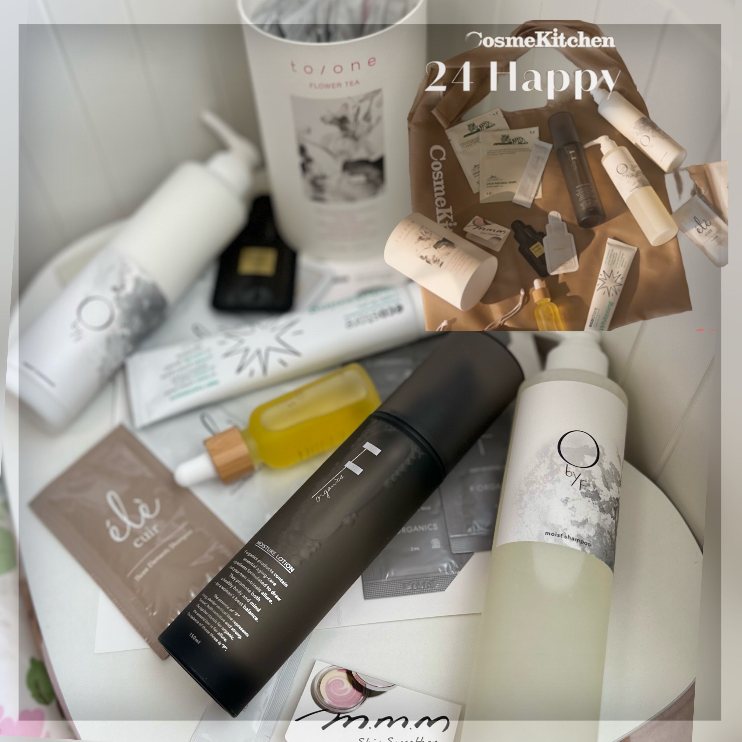 - 〈数量限定〉■キット内容 ・【O by F】モイストシャンプー 250ml (現品) ・【O by F】 リペアトリートメント 250g (現品) ・【F organics】 モイスチャーローション 150mL (現品) ・【to/one】 フラワーティーフレッシュベリー (現品) ・【ecostore(エコストア)】 トゥースペースト<ホワイトニング> 100g (現品) ・【soel】 ソエル セサミオイル30ml お守り風ポーチ付き ・【VT(ブイティー)】 VT シカナチュラル マスク 2枚 ・【FEMMUE(ファミュ)】イルミナス ベルベット サシェ ・【FEMMUE】ルミエール ヴァイタルC サシェ ・【ele cuir(エレキュイール)】シャンプー&コンディショナー(L&F) サシェ ・【ele cuir】デュアル マスク (スカルプ&ヘア) サシェ ・【m.m.m(ムー)】 スキンスムーザー PWーS(ブリスター) ・【SNIDEL BEAUTY(スナイデル ビューティ)】 リファイニング パウダーウォッシュ 1包 ・【Cosme Kitchen】 オリジナルエコバッグ (キット限定) その他、発売前の新商品のサシェが特別にハッピーバッグに登場!いち早くお試しいただけます。 約19,943円 (税込)相当→8,800円 (税込) ※コスメキッチンビューティー 銀座三越店、コスメキッチンビューティー 阪急うめだ本店、コスメキッチンビューティー 博多阪急店では【SNIDEL BEAUTY】 リファイニング パウダーウォッシュ 1包が、【naturaglace(ナチュラグラッセ)】メイクアップクリーム 01/02 サシェに変更となります。