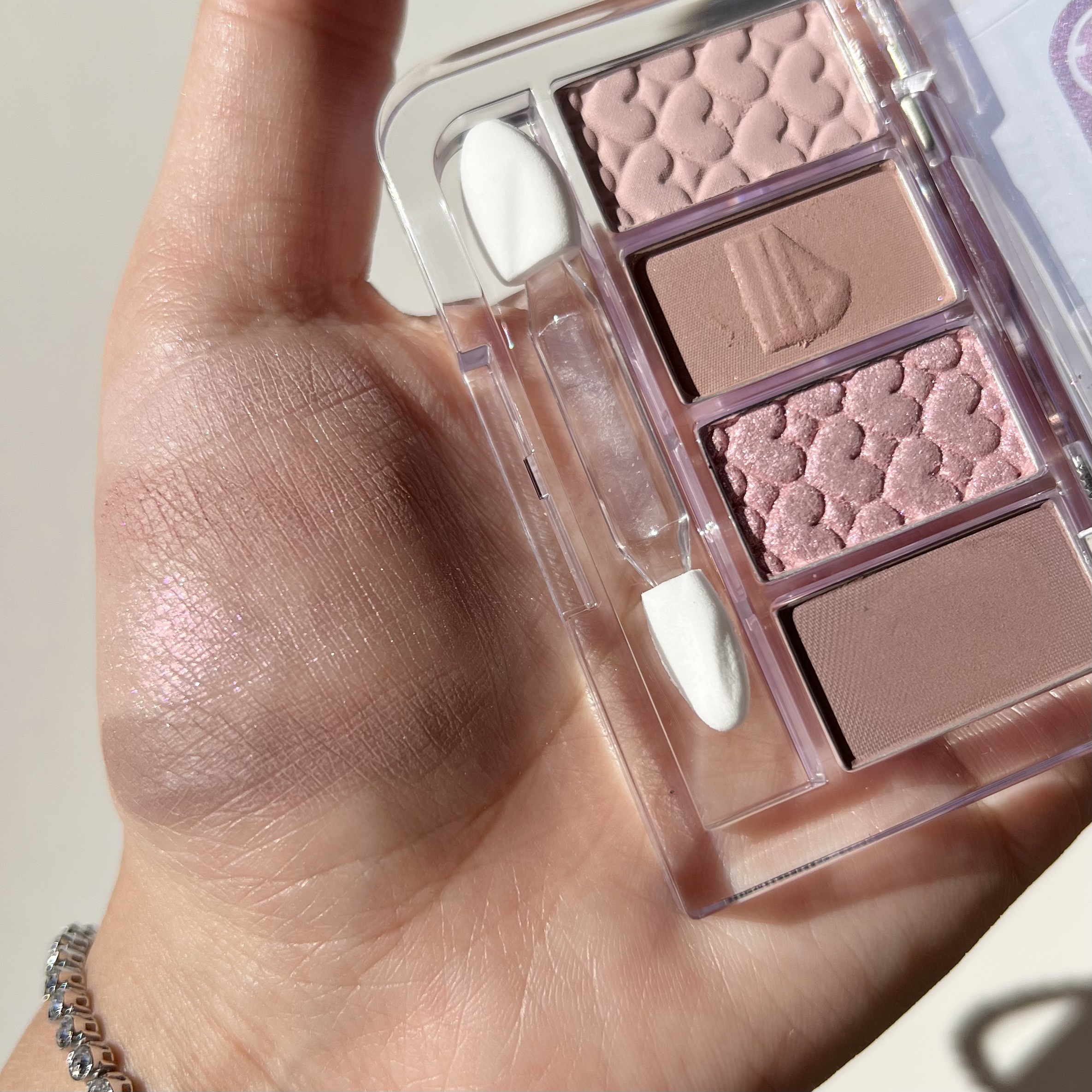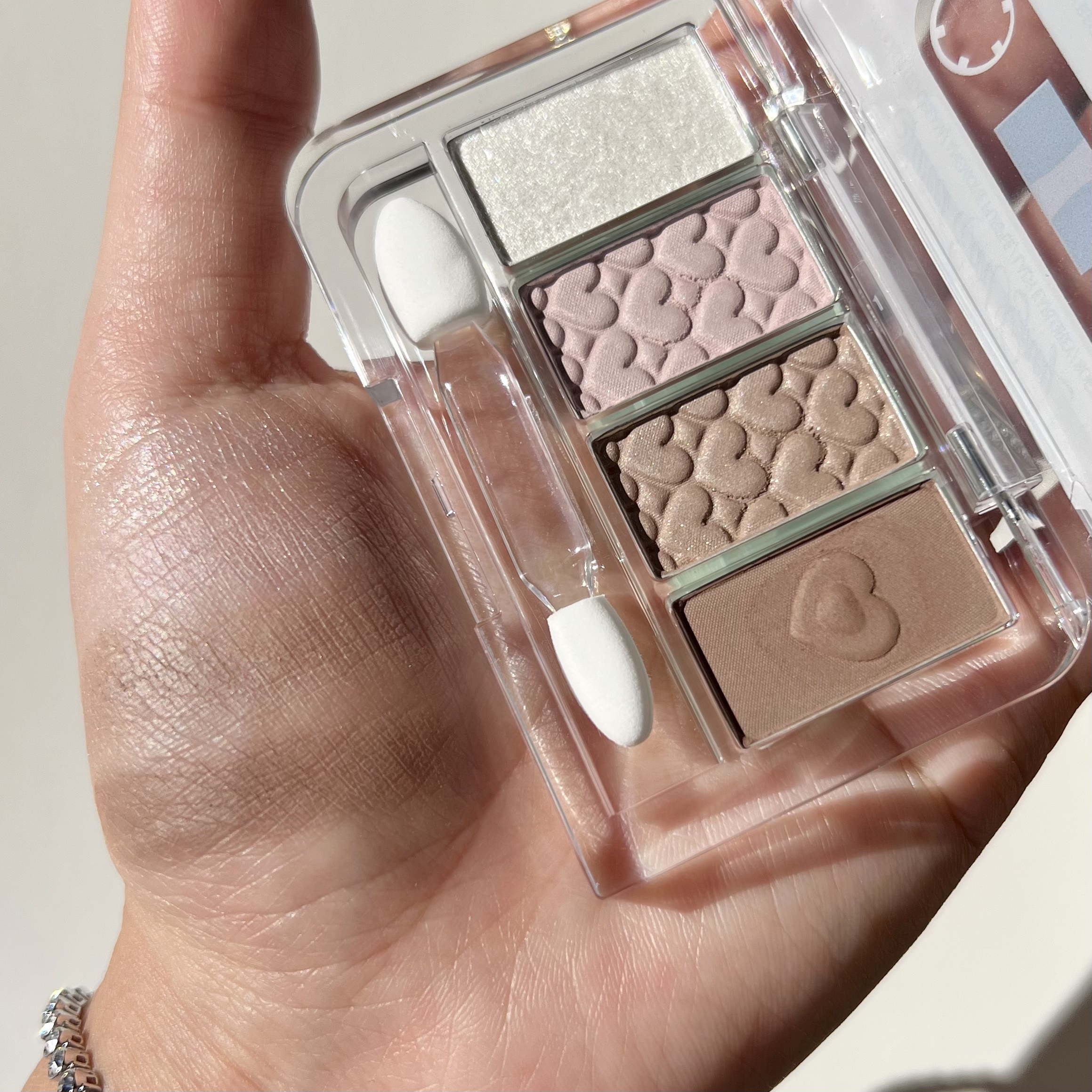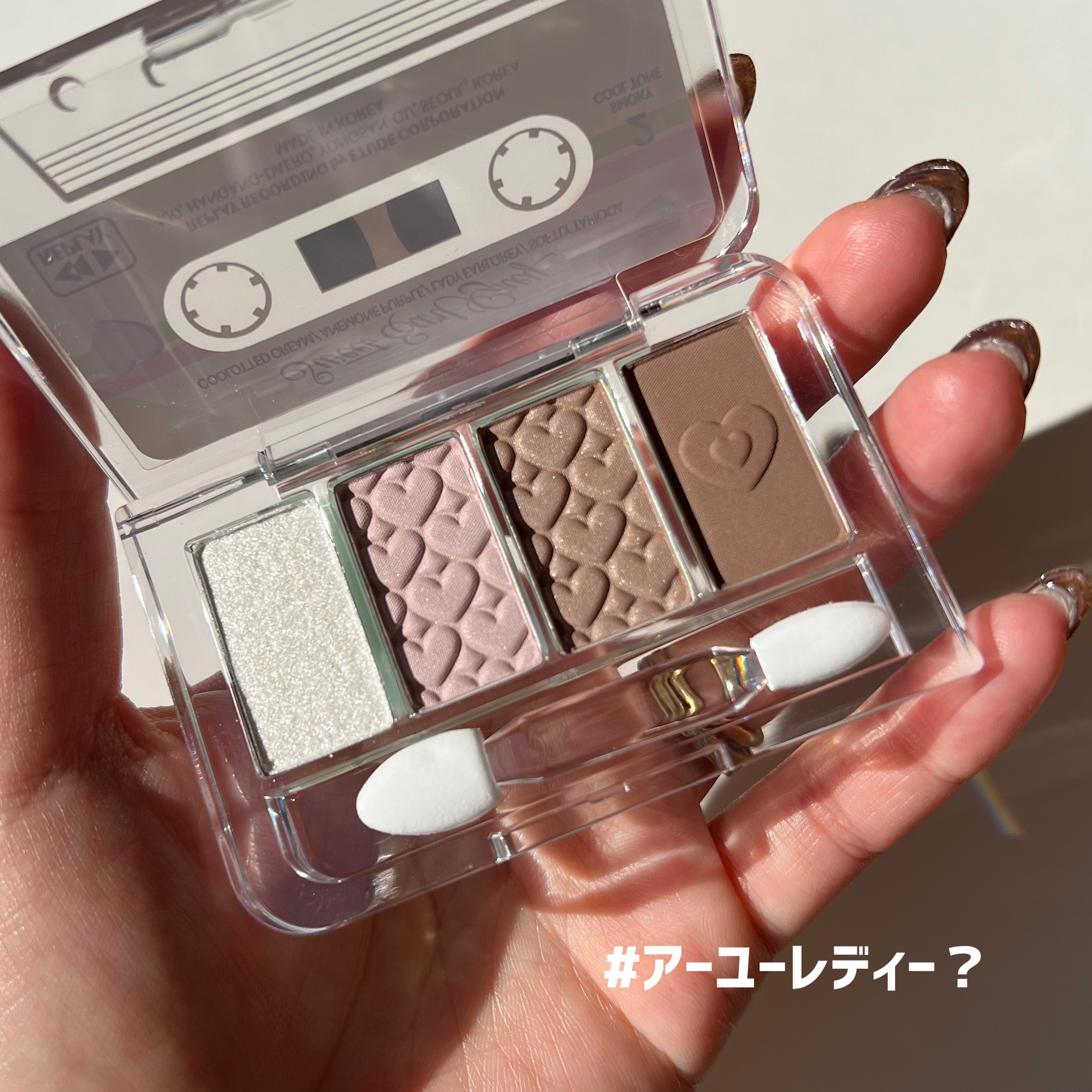 過去の人気色を復刻し、現代のトレンドと融合させた4色入りのアイシャドウパレット🍰 カセットテープを模したレトロで可愛らしいパッケージデザインが特徴で、懐かしさと新しさを兼ね備えたアイテムとして注目を集めています。 発色と質感使いやすい発色で、かなり可愛い。ラメが特に可愛い。濃すぎないから失敗しにくく、淡めが良い方にもおすすめだし、しっかり発色派さんにも、重ねることにより対応できるよ!