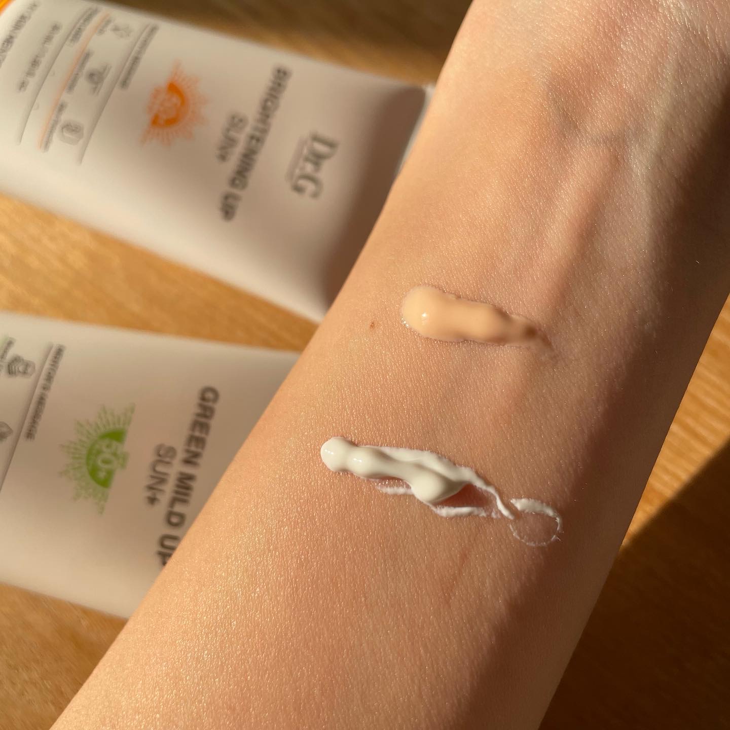 グリーンマイルドアップサンプラスはノンケミカル処方で敏感肌も使える ブライトニングアップサンプラスは化粧下地として使える肌馴染みのいいピンクベージュ どっちを選んでも損はないし、迷ったらどっちも買っとけ!が正直な感想😆