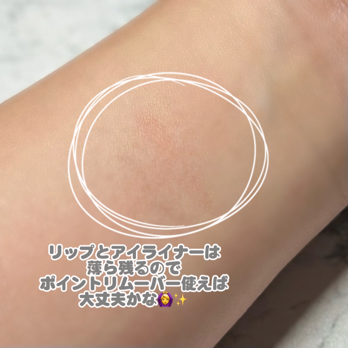 乾燥肌と汚い毛穴が改善されました(驚) 宇治抹茶同様、アイライナー以外は落ちました!! 多めに塗布して優しくマッサージするとほぼほぼ落ちました(^^) 肌質改善されている気がします