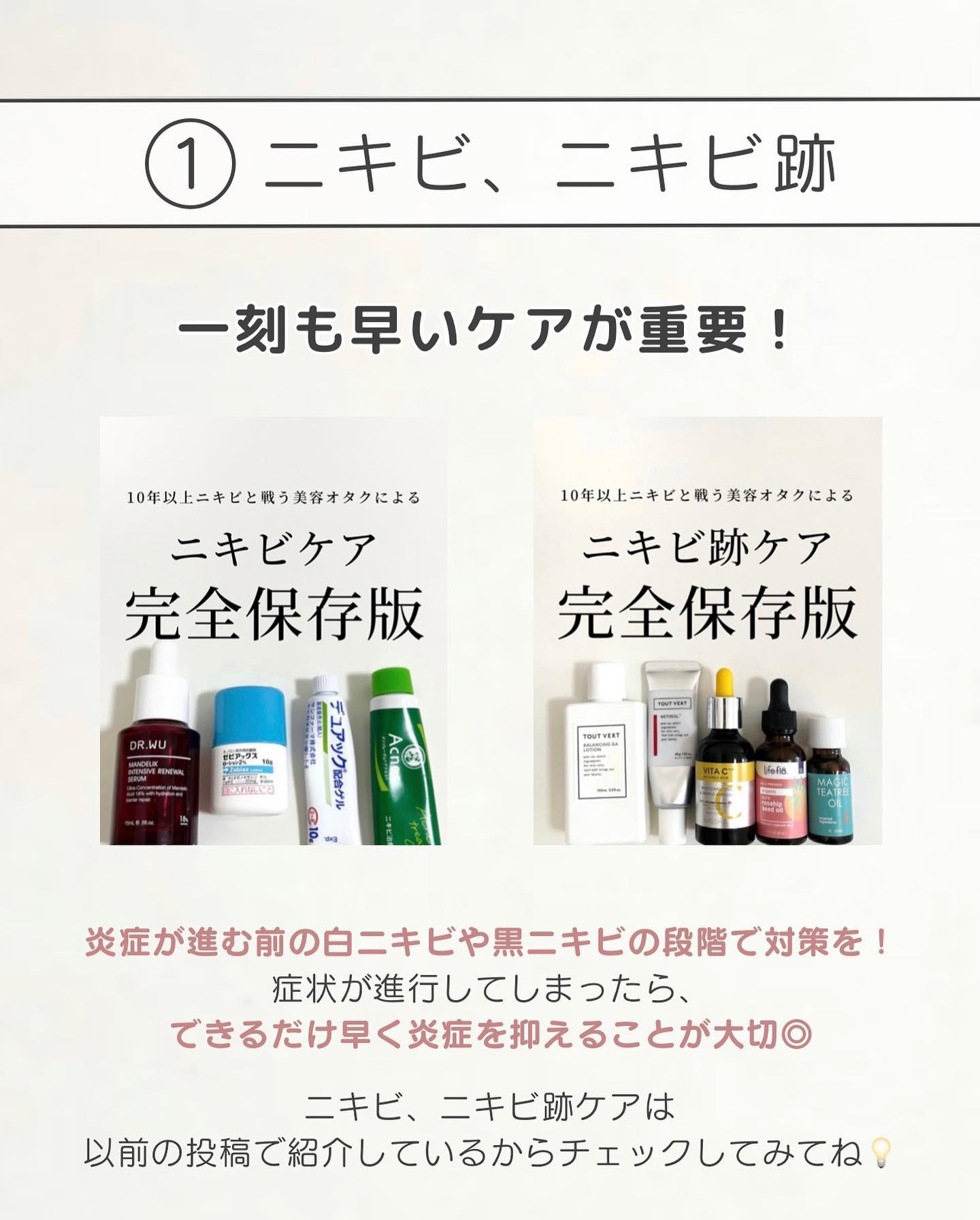 ニキビにも種類があってそれぞれ効果のあるアイテムが違うって知ってた🫢? 「こういうニキビはどんなケアが必要?」「フェイスラインのニキビは?」など 質問があれば、ここのコメント欄に書いてね✍️ いざという時にすぐ見返せるように、 この投稿を保存しておいてね🦢