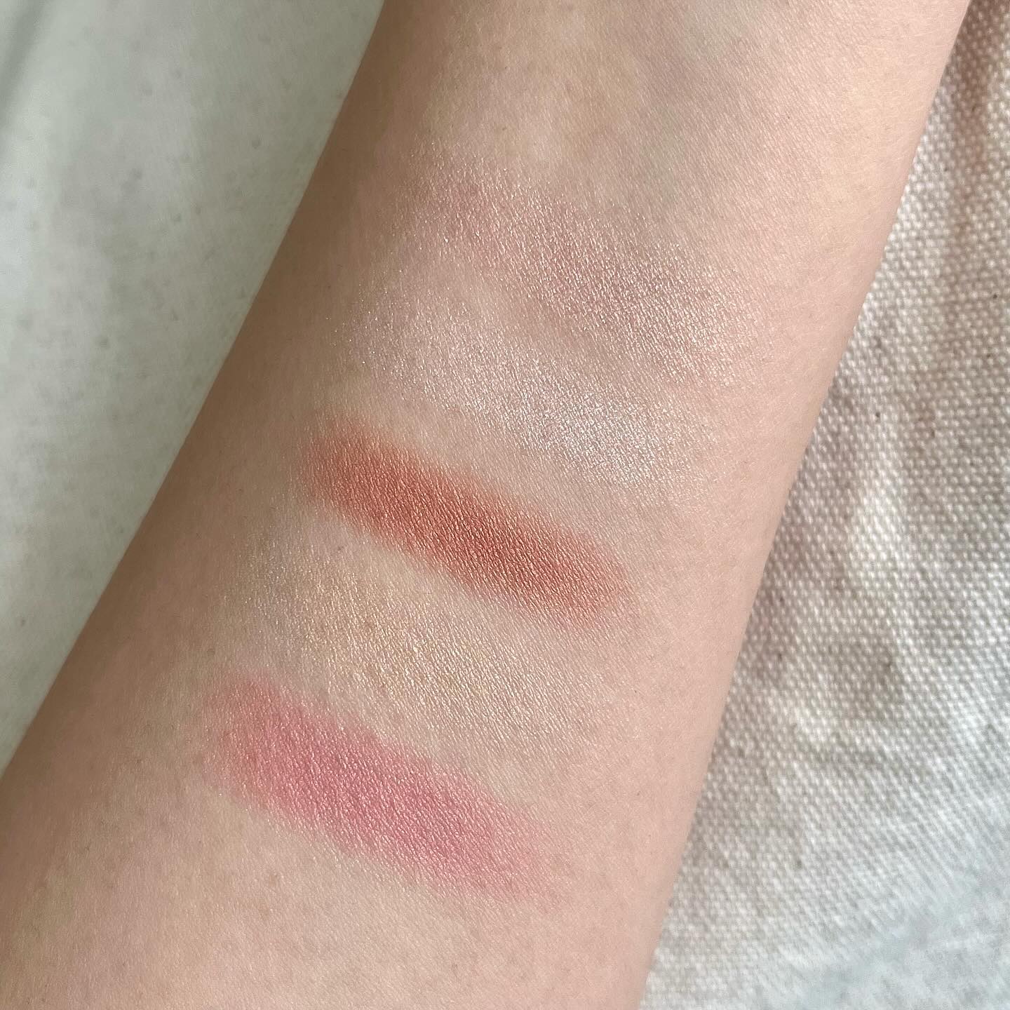 プライマーを使って、密度の高い感じのブラシで 左下ローズを置くように塗る。 ぼかすのは境目だけにして、しっかり色を出す。 右下のダークブラウンと思っていた濃い色は メイクしてみたら結構紫っぽく出たんですが これがまぁくすみ感が強くて…w くすみは何より苦手だよ😂😂 右上のラメはぺかっと光るのがとっても良い!!🤩 割とシンプルなメイクになるな~と思うけど しっかり色出せたので無事使っていけそうです💃🏼💓