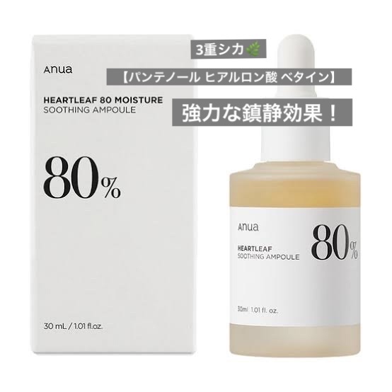 ニキビや肌荒れの鎮静をしてくれるドクダミエキスが80%配合されていて、伸びがよく、香りも無臭なので使いやすかったです!!Anuaの美容液は種類が多くて迷われるかもしれませんが、こちらは赤みや肌荒れ、毛穴が気になる方におすすめのアイテムです!敏...