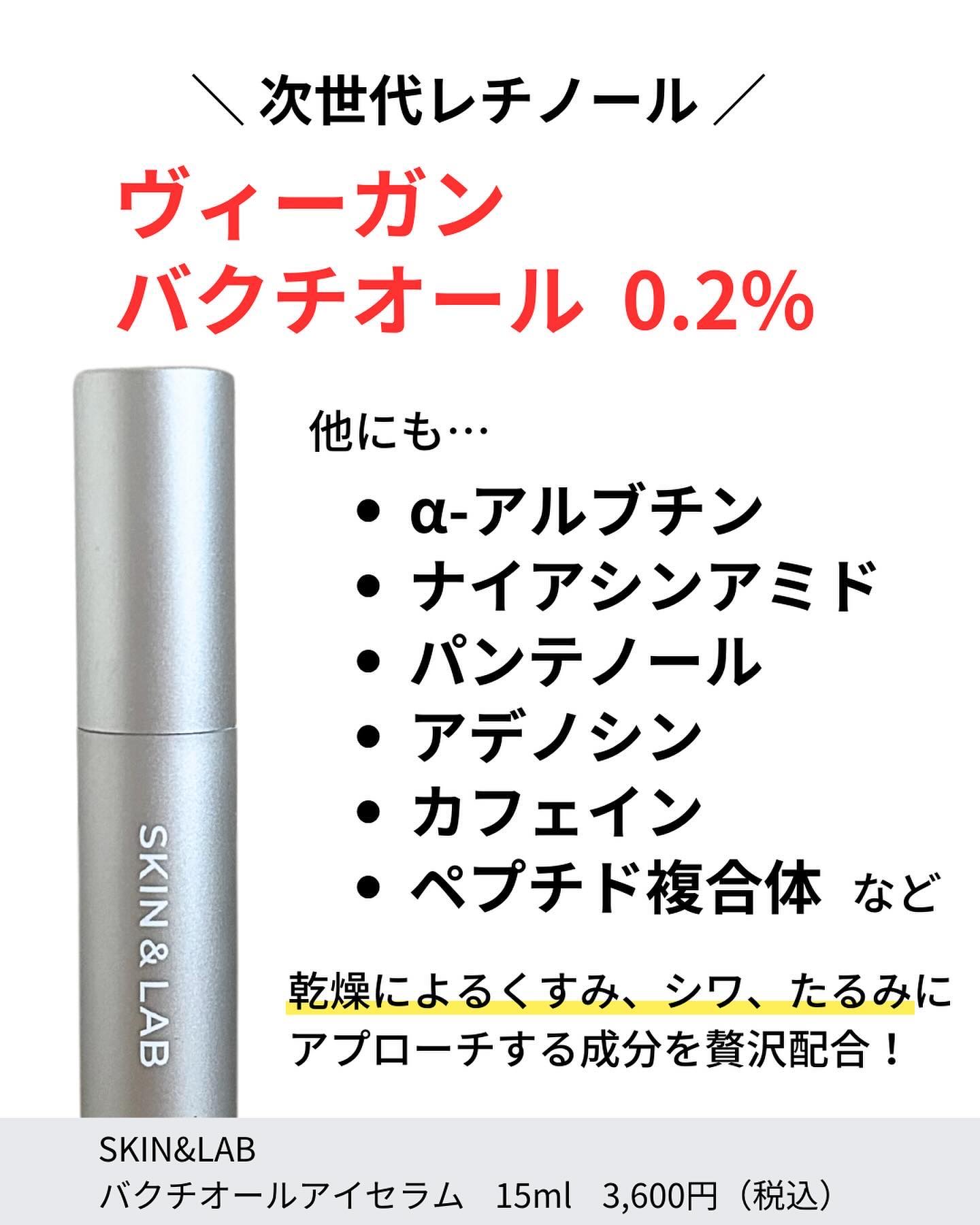 エイジングケア初心者さんや将来の為のスキンケアお探しの方にとってもおすすめだよ〜! Q0010総合・ビューティー部門1位を獲得!話題の ヴィーガンリポソームレチノル3%セラム。 薄い皮膚だからこそ繊細なケアが必要!ヴィーガン バクチオール0.2%とアデノシン、カフェインとペプチド複合物でたるんだ目のハリケア。