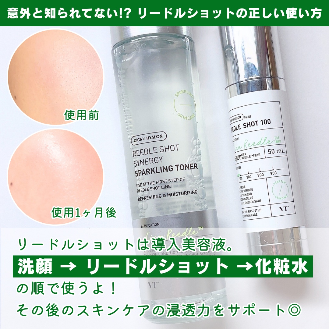 乾燥肌による正直レビュー✨/振って使う炭酸トナー!VT リードルショットシナジースパークリングトナー リードル入り 150ml:2530円程度今回はVTのリードルショットラインの化粧水、炭酸トナーをご紹介します!VTリードルショットシナジース...
