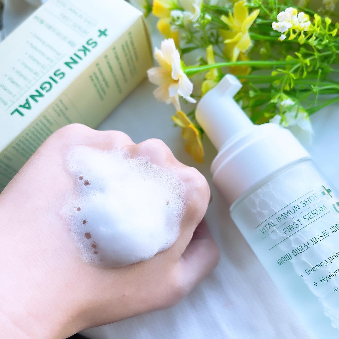 SKINSIGNALブルービタミンバブルセラムメイクのりを高めるソリューション。5種の総合ビタミンと4重ヒアルロン酸が肌の10層まで働きかけ、シミ・くすみ・インナードライ・毛穴のボリュームまでケアする万能30秒バブルパック。#SKINSIGN...