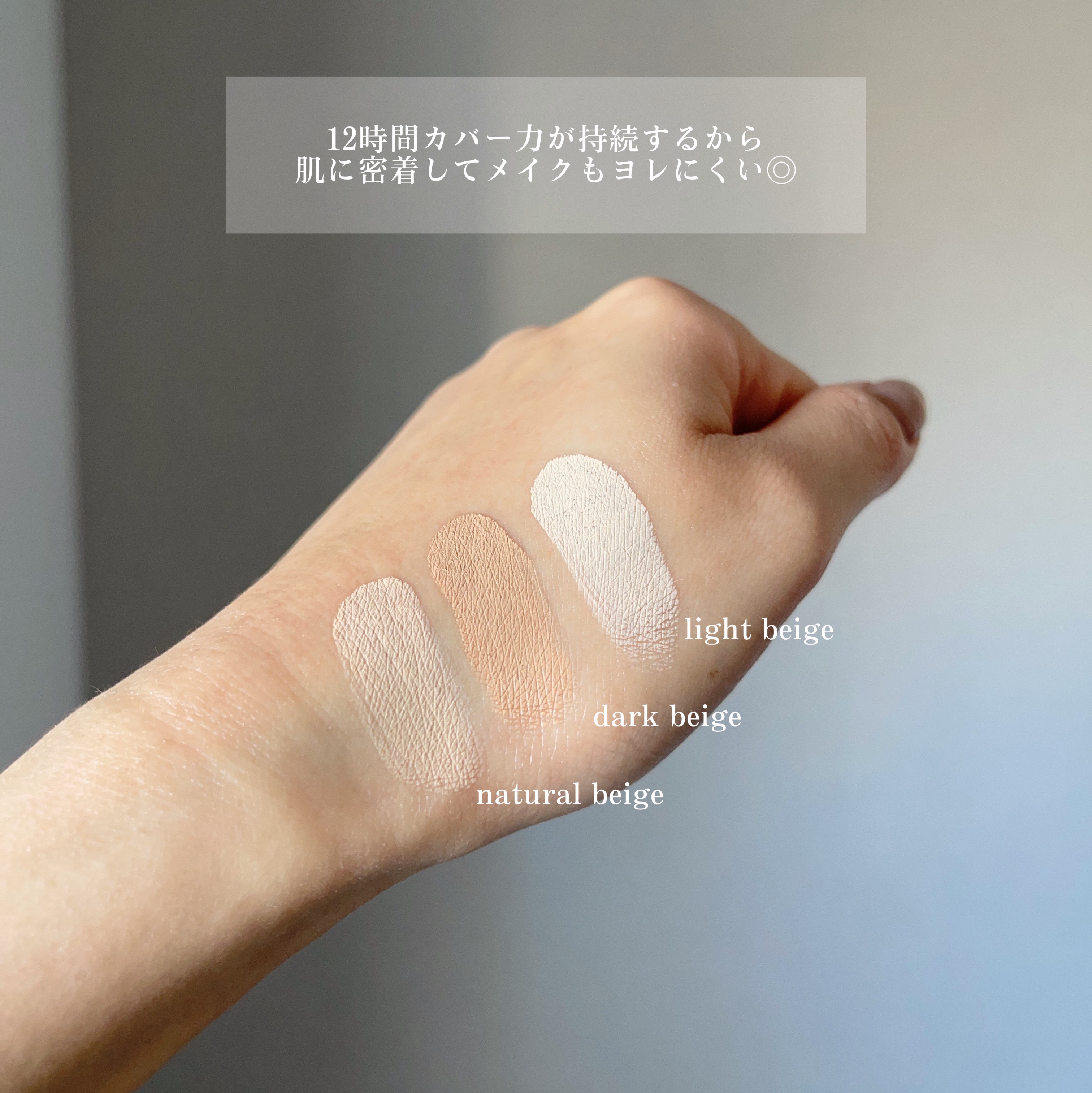 - <クール> [アイボリーベージュ] トリ(カプリル酸/カプリン酸)グリセリル、酸化チタン、ポリイソブテン、メタクリル酸メチルクロスポリマー、ネオペンタン酸イソデシル、マイカ、水添ヒマシ油、エチルヘキサン酸セテアリル、リンゴ酸ジイソステアリル、ビスジグリセリルポリアシルアジペート-2、パラフィン、酸化鉄、1,2-ヘキサンジオール、セスキオレイン酸ソルビタン、水酸化Al [ナチュラルベージュ] トリ(カプリル酸/カプリン酸)グリセリル、酸化チタン、メタクリル酸メチルクロスポリマー、ポリイソブテン、ネオペンタン酸イソデシル、水添ヒマシ油、エチルヘキサン酸セテアリル、酸化鉄、ヘキサ(ヒドロキシステアリン酸/ステアリン酸/ロジン酸)ジペンタエリスリチル、リンゴ酸ジイソステアリル、マイカ、パラフィン、水酸化Al、1,2-ヘキサンジオール、セスキオレイン酸ソルビタン [ピンクベージュ] トリ(カプリル酸/カプリン酸)グリセリル、酸化チタン、ポリイソブテン、メタクリル酸メチルクロスポリマー、ネオペンタン酸イソデシル、マイカ、水添ヒマシ油、エチルヘキサン酸セテアリル、リンゴ酸ジイソステアリル、ビスジグリセリルポリアシルアジペート-2、酸化鉄、パラフィン、1,2-ヘキサンジオール、セスキオレイン酸ソルビタン、水酸化Al [1%未満の共通成分] 水、BG、加水分解ヒアルロン酸、セラミドNP、トリュフエキス、ツベルマグナツムエキス、エチルヘキシルグリセリン、ヒアルロン酸Na、グリセリン、グリシン、セリン、グルタミン酸、アスパラギン酸、ロイシン、アラニン、リシン、アルギニン、チロシン、フェニルアラニン、トレオニン、バリン、プロリン、イソロイシン、ヒスチジン、システイン、メチオニン、マイクロクリスタリンワックス、メチコン、カプリリルグリコール、スクワラン、パンテノール、乳酸桿菌培養溶解質、BHT、糖脂質、オレイン酸ポリグリセリル-10、レスベラトロール、水添レシチン <ニュートラル> [ダークベージュ]トリ(カプリル酸/カプリン酸)グリセリル、酸化チタン、メタクリル酸メチルクロスポリマー、酸化鉄、ポリイソブテン、ネオペンタン酸イソデシル、水添ヒマシ油、エチルヘキサン酸セテアリル、ヘキサ(ヒドロキシステアリン酸/ステアリン酸/ロジン酸)ジペンタエリスリチル、リンゴ酸ジイソステアリル、パラフィン、マイカ、水酸化Al、1,2-ヘキサンジオール、セスキオレイン酸ソルビタン、BHT [ナチュラルベージュ]トリ(カプリル酸/カプリン酸)グリセリル、酸化チタン、ポリメタクリル酸メチル、ポリイソブテン、ネオペンタン酸イソデシル、水添ヒマシ油、エチルヘキサン酸セテアリル、酸化鉄、ヘキサ(ヒドロキシステアリン酸/ステアリン酸/ロジン酸)ジペンタエリスリチル、リンゴ酸ジイソステアリル、マイカ、パラフィン、水酸化Al、1,2-ヘキサンジオール、セスキオレイン酸ソルビタン [ライトベージュ]トリ(カプリル酸/カプリン酸)グリセリル、酸化チタン、メタクリル酸メチルクロスポリマー、ポリイソブテン、ネオペンタン酸イソデシル、水添ヒマシ油、エチルヘキサン酸セテアリル、マイカ、ヘキサ(ヒドロキシステアリン酸/ステアリン酸/ロジン酸)ジペンタエリスリチル、リンゴ酸ジイソステアリル、酸化鉄、パラフィン、水酸化Al、1,2-ヘキサンジオール、セスキオレイン酸ソルビタン、BHT [1%未満の共通成分]水、BG、グリセリン、加水分解ヒアルロン酸、セラミドNP、トリュフエキス、ツベルマグナツムエキス、エチルヘキシルグリセリン、ヒアルロン酸Na、グリシン、セリン、ロイシン、アラニン、リシン、アルギニン、チロシン、フェニルアラニン、プロリン、トレオニン、バリン、イソロイシン、ヒスチジン、メチオニン、システイン、マイクロクリスタリンワックス、カプリリルグリコール、メチコン、スクワラン、パンテノール、乳酸桿菌培養溶解質、糖脂質、オレイン酸ポリグリセリル-10、グルタミン酸、レスベラトロール、水添レシチン、アスパラギン酸
