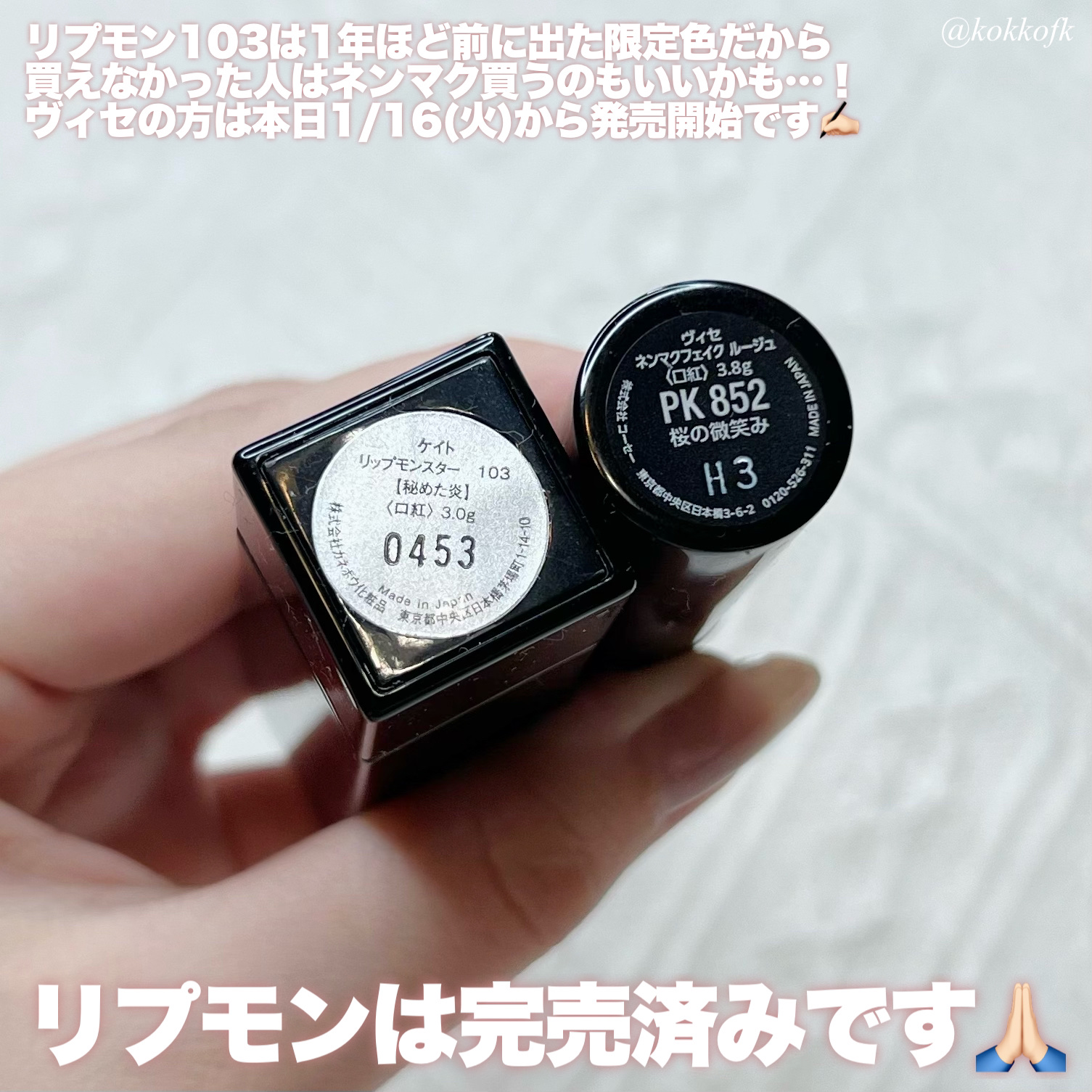 KATEリップモンスター&Viseeネンマクフェイクルージュ手持ち7種比較✨KATEリップモンスター062:00AM07ラスボスEX-9戦慄の喜笑リップモンスタークリアトーンC01炎化モンスターViseeネンマクフェイクルージュRD450金魚...