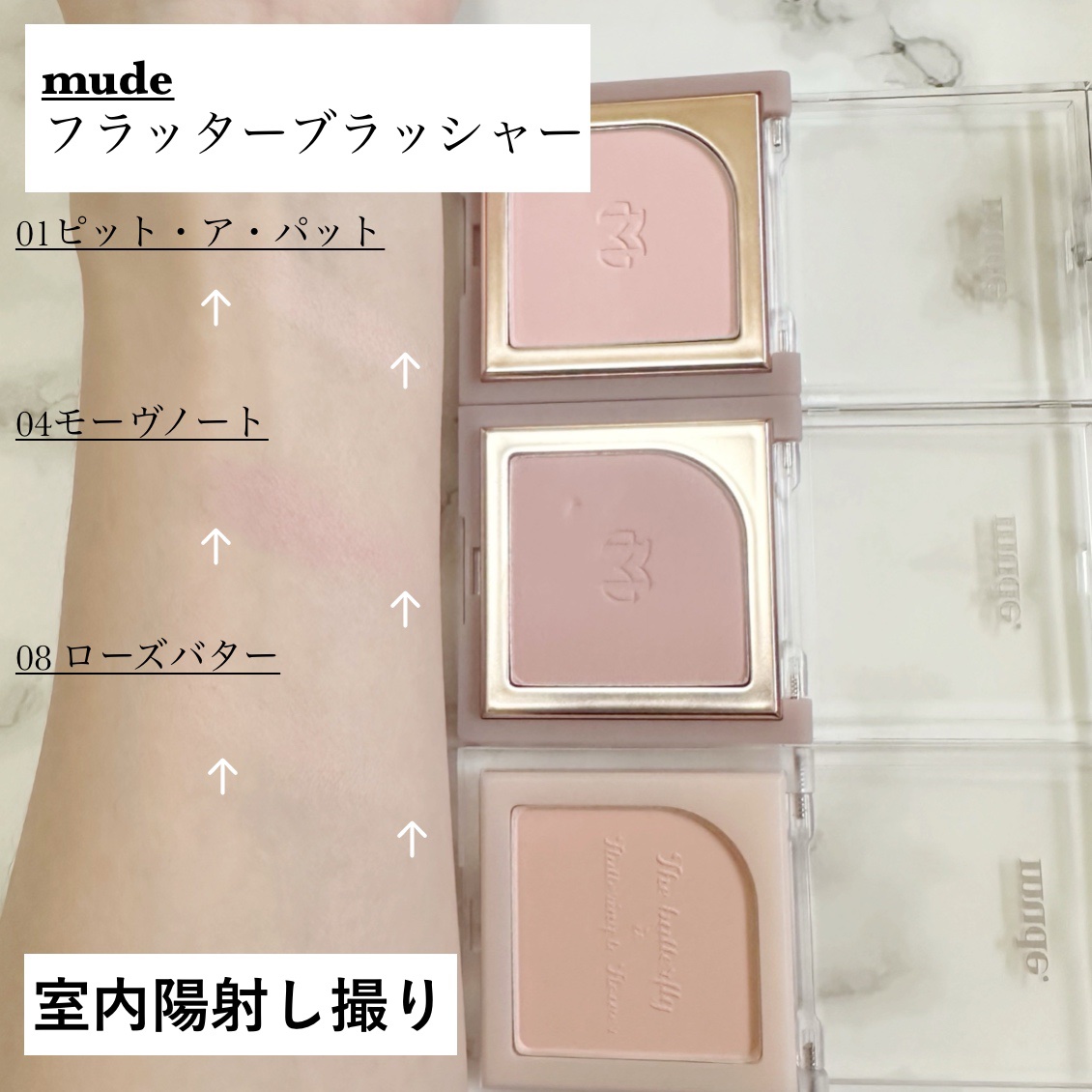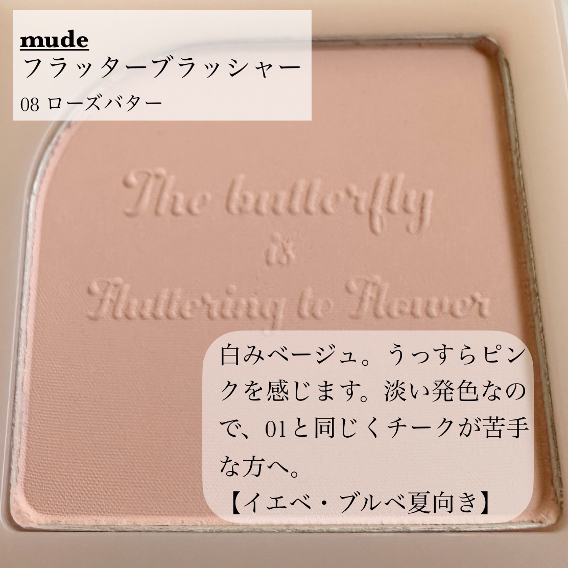 白みを感じるピンク、チーク苦手な方でも扱いやすいカラーに感じます。 チークはくすみを感じるカラーですが、ブラシで頬へ載せると血色を感じるカラー。 白みベージュ。オレンジより黄身が少なく感じるのでブルベ夏さんにも。 パウダーはロムアンドより柔らかく感じました。