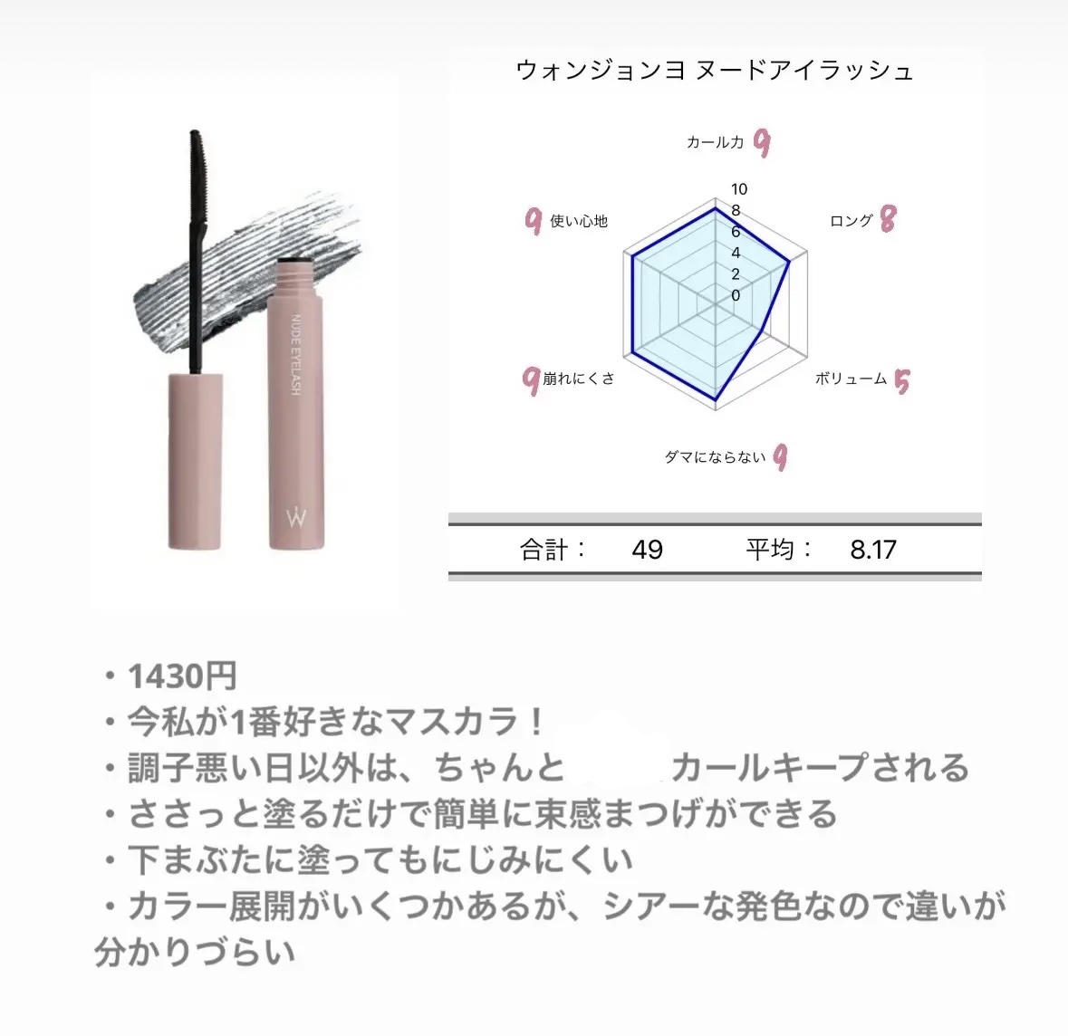 | マスカラランキング第90位 | ブラシが超極細で塗りやすい!!これは毎日使いたくなります!! | 詳細を見る | |