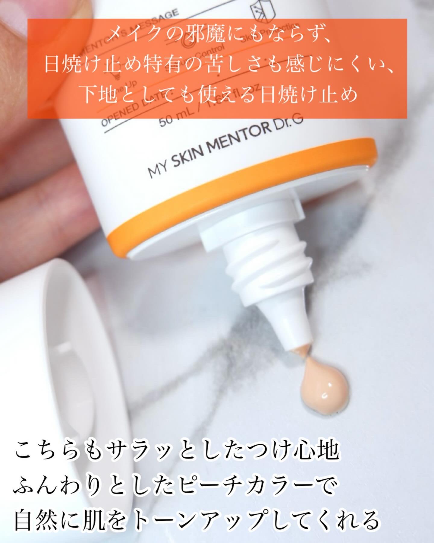 肌への負担は少なく 焼かない日焼け止めとして人気です ピーチベースなので、自然に肌をトーンアップさせてくれる化粧下地としても使える日焼け止めです🧏🏼♀️ 無機系(紫外線散乱剤)の日焼け止めなので肌で光を跳ね返し紫外線が肌に吸収しにくく 塗った瞬間から紫外線を反射してくれます スキンケア成分もたくさん起合しておりツボクサやドクダミは、肌の温度を下げるので肌荒れや肌トラブルを抑え 敏感な肌を外部の刺激から守ります☀️