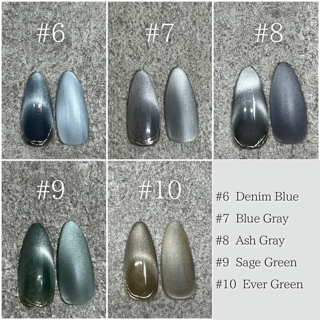 5ミクロンより細かい粒子! 4ミクロンマグネット🧲✨ 粒子の動きも早いし うるうるちゅるんも簡単💕 ①4ミクロンマグを塗布し真ん中を光らせ硬化 もう一度繰り返す ② JELLY GELを乗せ斜めにピンセットで押し スタッズを交差している所に乗せ硬化 溝が無くならないように薄くトップをして硬化\完成/ リボン- ①4ミクロンマグを塗布し、輪になるよう光りを 動かし硬化 パーツを乗せ\完成/ フレンチ- ①夏03を一度塗り 4ミクロンマグをフレンチに乗せフレンチのカーブに沿って 光らせ硬化 パーツを乗せ\完成/
