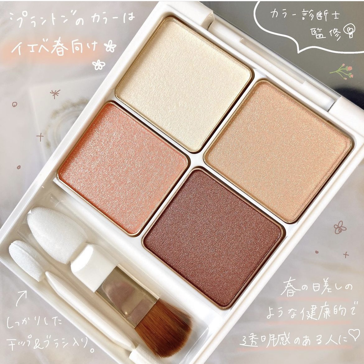 - 流行に左右されないピンク系・ブラウン系・ベージュ系・ホワイト系という基本の4色展開。水分量を多めにした湿式アイシャドーなので、パウダーでありながらしっとりとした付け心地。春夏秋冬に診断される、自分に合ったカラーを選ぶことで、4色すべての色がきれいに映えます。単色使いも素敵ですし、パレットの中の色、パール感、ラメ感などを自在に組み合わせることで、さらなる魅力を引き出します。 メイクをしているときにも香りを楽しんで華やかな気持ちになって欲しいという願いを込めて、すべてのアイシャドーにはリリーの香りづけがされています。